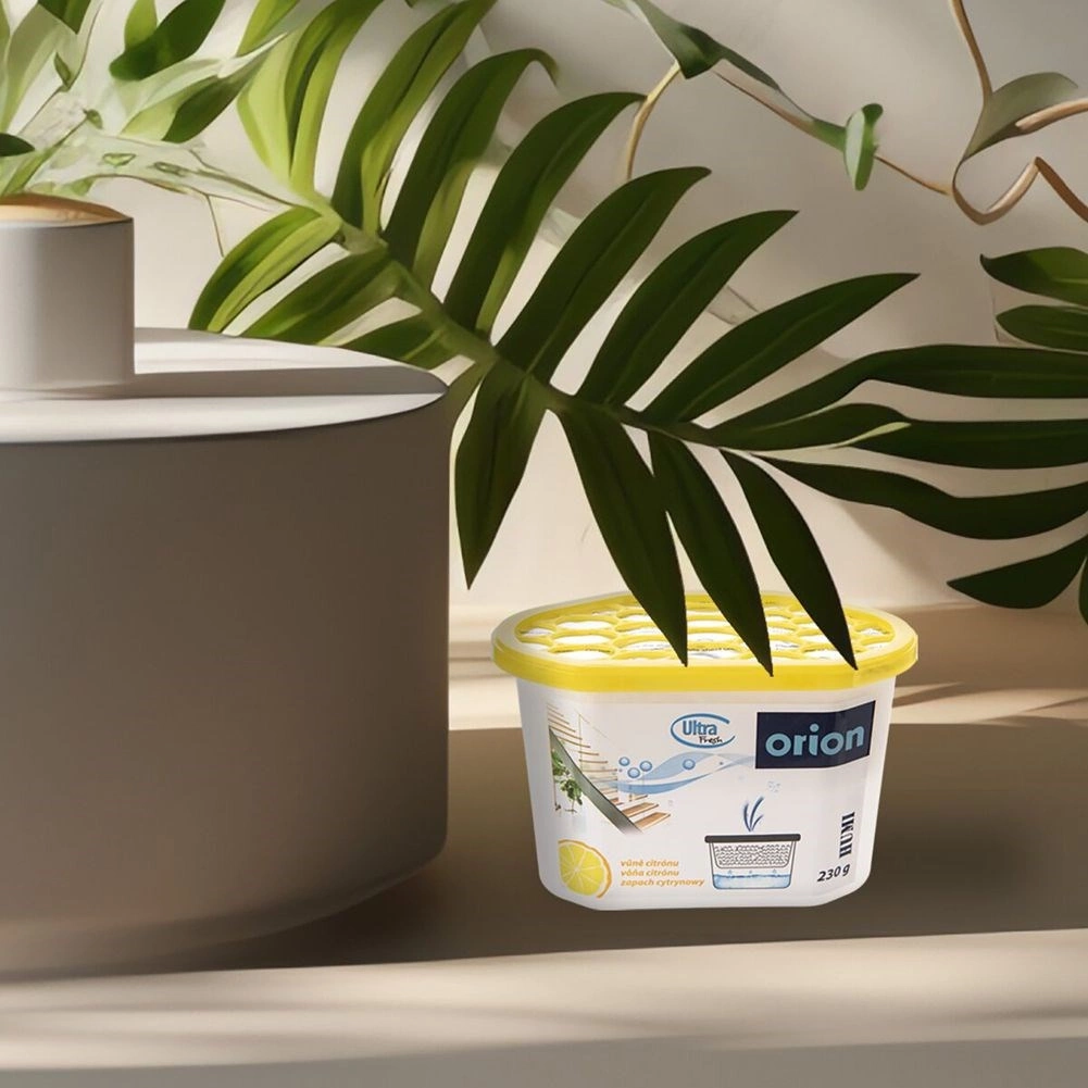 Ovaj kompaktni apsorber vlage izvrstan je pomoćnik za kućanstva, podrume, garaže i vikendice. Granule kalcijeva klorida učinkovito upijaju višak vlage i na dnu posude ostavljaju vodu. Istovremeno oslobađa svježu aromu limuna koja ugodno osvježava interijer.