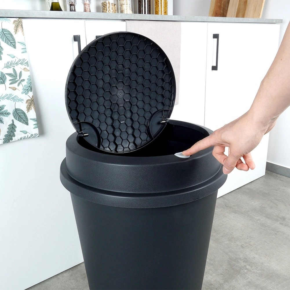 Ova crna kanta za otpad zapremnine 47 litara osmišljena je za svakodnevnu udobnost i čistoću. Ima dvofazni poklopac za brzo odlaganje otpada preklapanjem te automatsko otvaranje gumbom, koje pomaže smanjiti širenje neugodnih mirisa. Zahvaljujući bezvremenskom izgledu, savršeno se uklapa u moderne i klasične interijere.