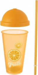 Uživajte u svojim omiljenim hladnim napitcima sa stilom – ova plastična čaša s poklopcem i slamkom donosi svjež citrusni dizajn i udobnost pri pijenju. Zahvaljujući vijčanom poklopcu u napitak ne ulaze nečistoće ni insekti, a višekratna slamka ostaje sigurno na mjestu.