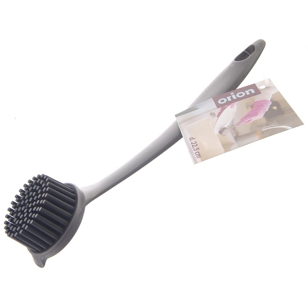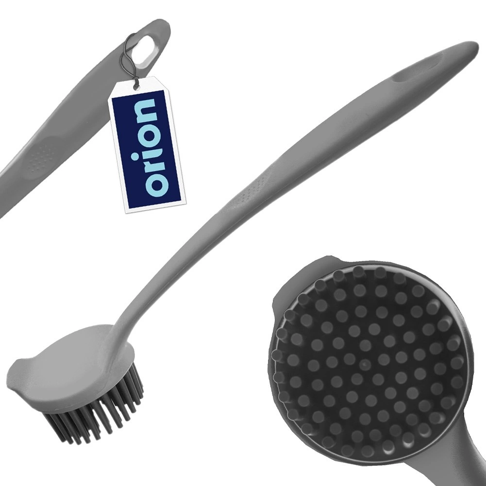 Ergonomska drška s oblikovanom udubinom i izbočinama za prst jamči siguran hvat i s mokrim rukama. Prednji strugač rješava zagorene ostatke i osušenu prljavštinu, dok rupa za vješanje drži četku uvijek pri ruci. Kvalitetna izrada brenda ORION jamči dug vijek trajanja i lako održavanje.