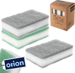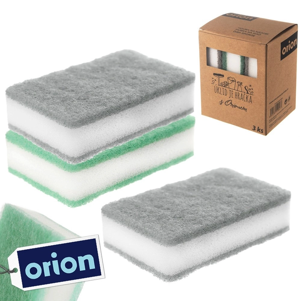 Trostruke kuhinjske spužvice kombiniraju mekanu pjenu s čvrstim abrazivnim slojem za učinkovito uklanjanje nečistoća bez oštećivanja površina. U pakiranju su dvije sive i jedna zelena spužvica, prikladne za pranje posuđa i čišćenje kuhinjskih ploha.