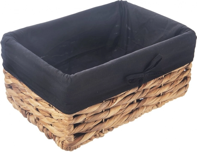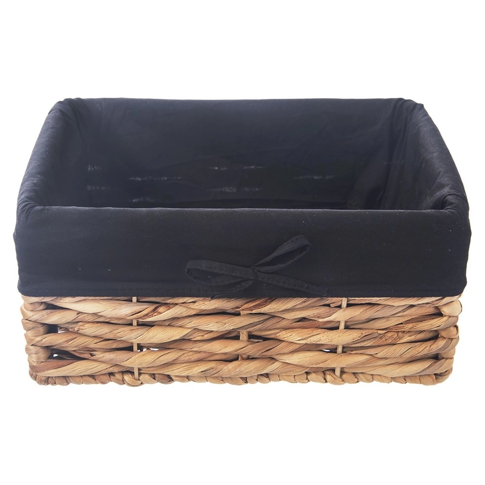 Elegantna košara za pohranu od prirodnog materijala postat će praktičan pomoćnik u dnevnom boravku, kupaonici, spavaćoj sobi i garderobi. Zahvaljujući čvrstom ručnom pletivu i metalnoj konstrukciji drži sve, od kozmetike i dodataka do rublja i sitnica. Tekstilni uložak u crnoj boji s mašnicom štiti sadržaj i daje košari moderan izgled.