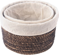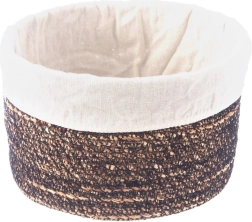 Košara je izrađena od vodenog zumbula s efektim prošivom tamnom niti. Svaki je komad original koji prostoru daje toplinu i teksturu.