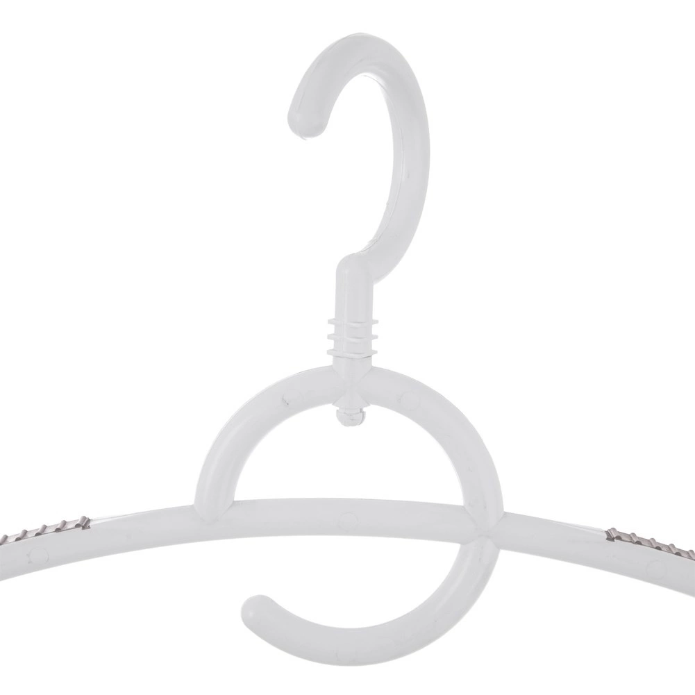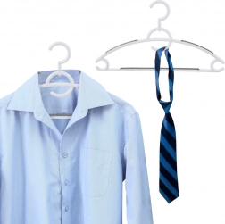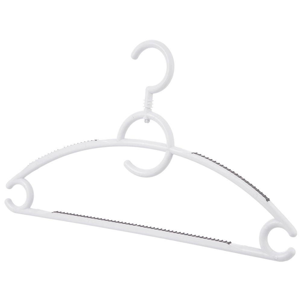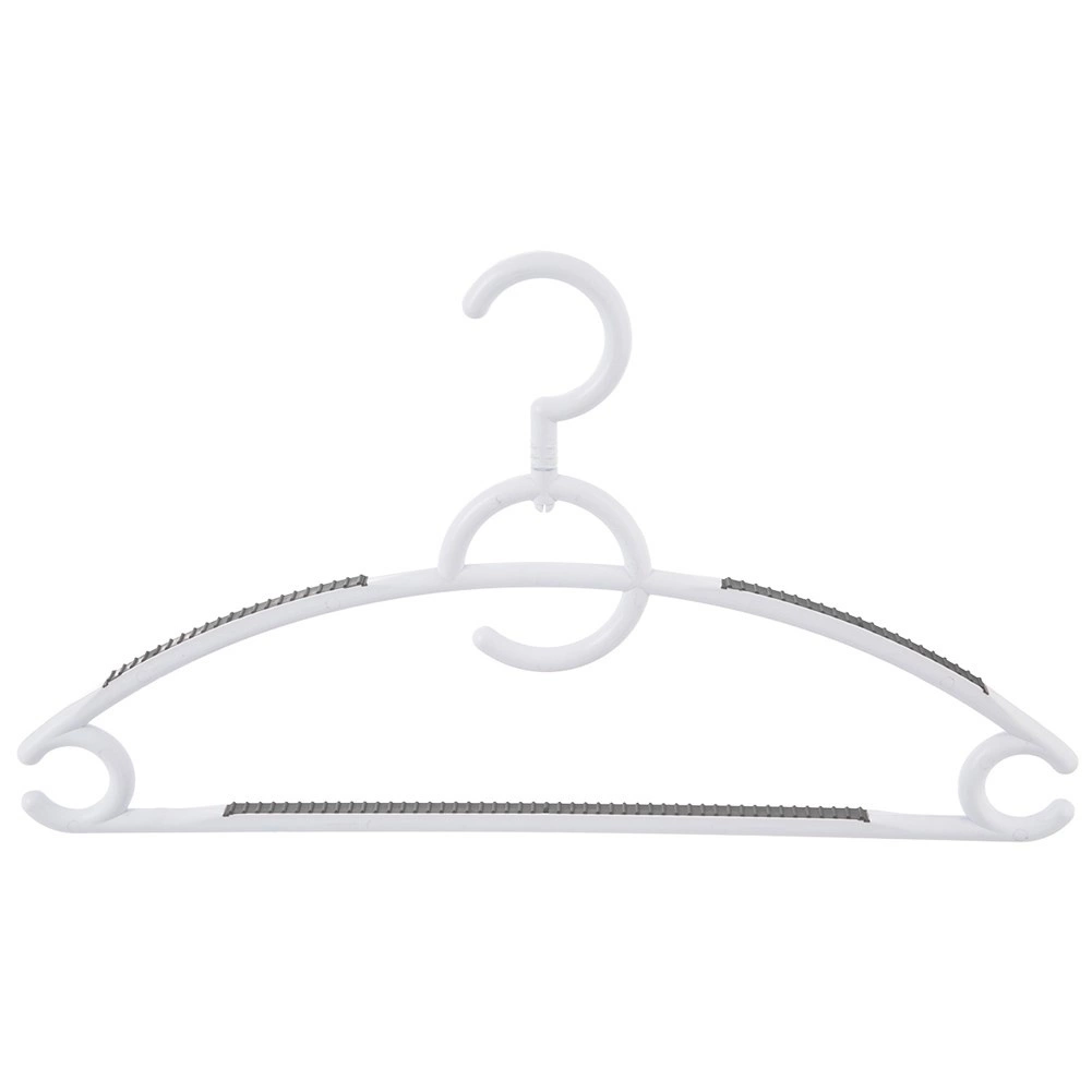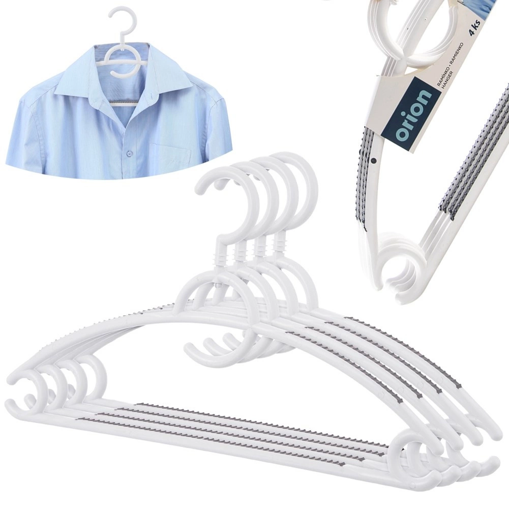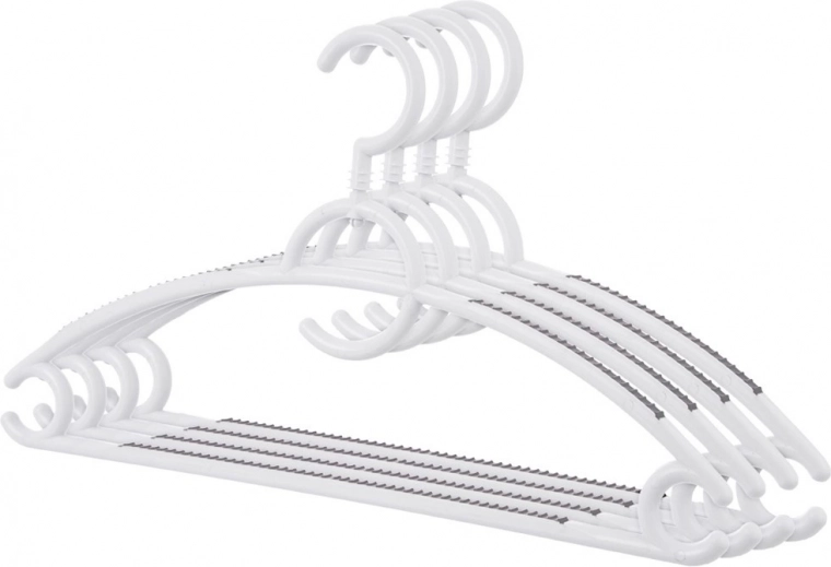 Održite garderobu preglednom i bez gužvanja. Ovaj set od 4 bijele plastične vješalice kombinira izdržljivost, protuklizne površine i rotirajuću kuku za maksimalnu udobnost pri vješanju i organizaciji. Zahvaljujući pametnom obliku i dodatnim elementima za vješanje, jednako dobro podnose lagane topove i kapute.