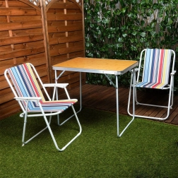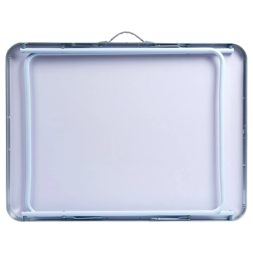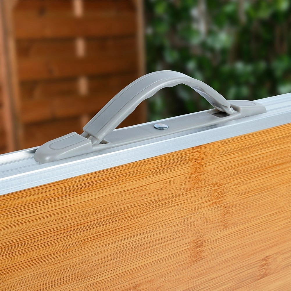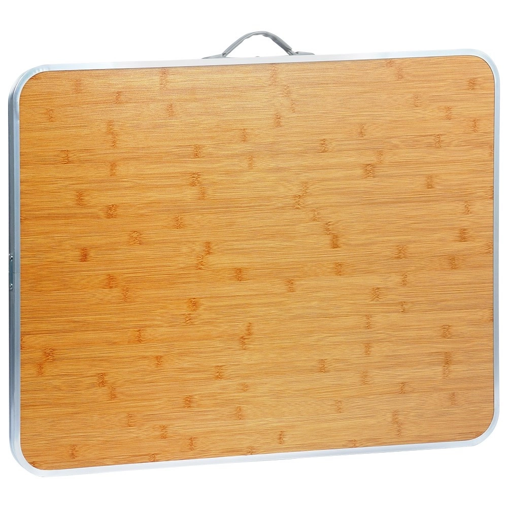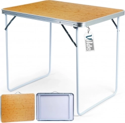 Lagan i izdržljiv sklopivi stol idealan je za vrt, balkon, terasu i za put – kampiranje, boravak u šatoru ili piknik. Ploča od MDF-a u modernom drvenom dekoru zaštićena je posebnom površinskom obradom, aluminijski rub i čelične noge osiguravaju stabilnost i dug vijek trajanja. Nakon sklapanja ima kompaktne dimenzije i oblik ravnog kovčega s udobnom ručkom.