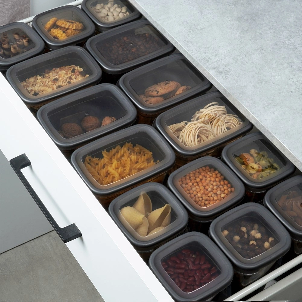 Pravokutni profil i ravan poklopac olakšavaju slaganje više posuda i učinkovito korištenje prostora u smočnici, ladicama i hladnjaku.