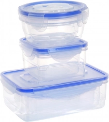 Poklopci s četiri klik kopče pružaju 100% zaštitu od curenja, pa su posude prikladne za putovanja, posao i školu. Posude su stogive i uložive, čime štede prostor u ormariću, hladnjaku i zamrzivaču. Pogodne za perilicu posuđa i mikrovalnu pećnicu (poklopac s ventilom za odzračivanje).
