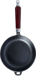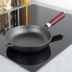 Univerzalna lijevana tava 20 cm za prženje, pečenje i pirjanje na svim vrstama štednjaka uključujući indukciju, na roštilju i izravno iznad vatre. Masivno lijevano željezo odlično akumulira toplinu, osigurava ravnomjerno pečenje i dugo održava jela toplima. Ergonomska drvena ručka i pomoćno uho za sigurnu manipulaciju, mogućnost vješanja. Bez kemijskih površinskih obrada, uz pravilno održavanje iznimno izdržljiva i dugotrajna.