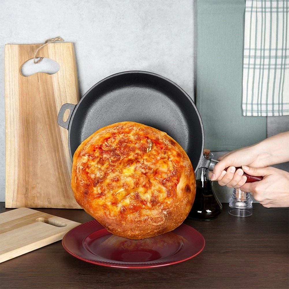 Tava je pogodna za plinske, električne, staklokeramičke, halogene i indukcijske ploče za kuhanje. Može se koristiti i u pećnici (nakon skidanja drvene ručke) ili direktno iznad vatre. Praktična pomoćna ušica olakšava rukovanje, a otvor na ručki omogućuje vješanje. Pravilna njega (pranje, sušenje i redovito premazivanje uljem) osigurava dug vijek bez korozije.