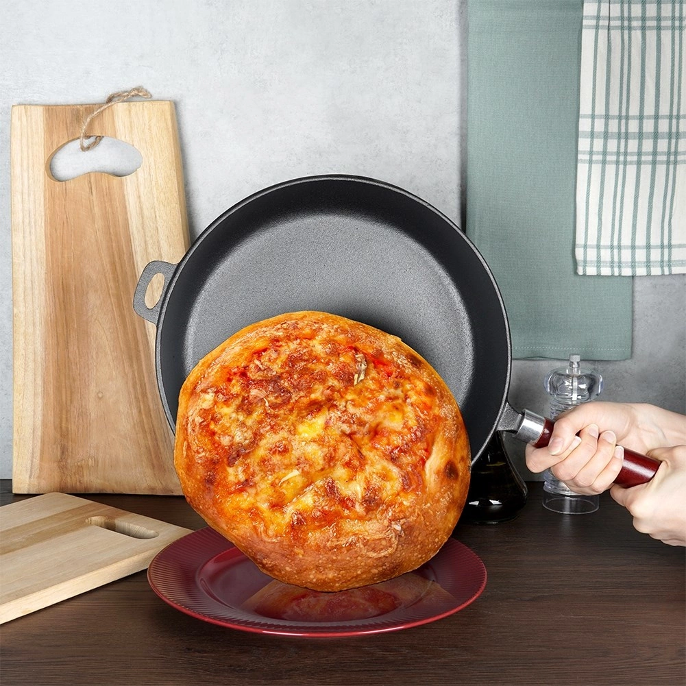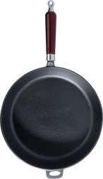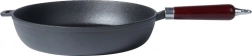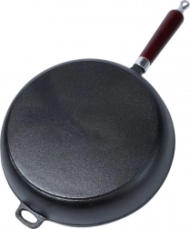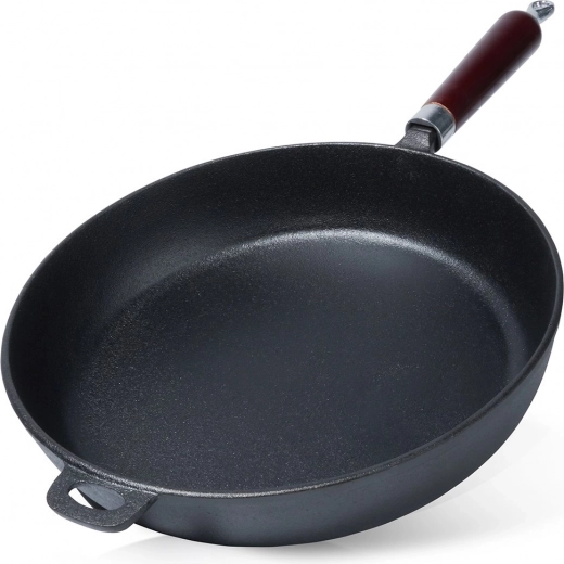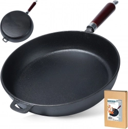 Univerzalna tava od lijevanog željeza promjera 30 cm za svakodnevno kuhanje kod kuće i na otvorenom. Zahvaljujući masivnom tijelu izvrsno provodi i zadržava toplinu, ima duboke stijenke, ergonomsku drvenu ručku i pomoćno uho za sigurno prenošenje. Prikladna za indukciju, plin, struju, staklokeramiku, halogen te u pećnicu nakon skidanja ručke.