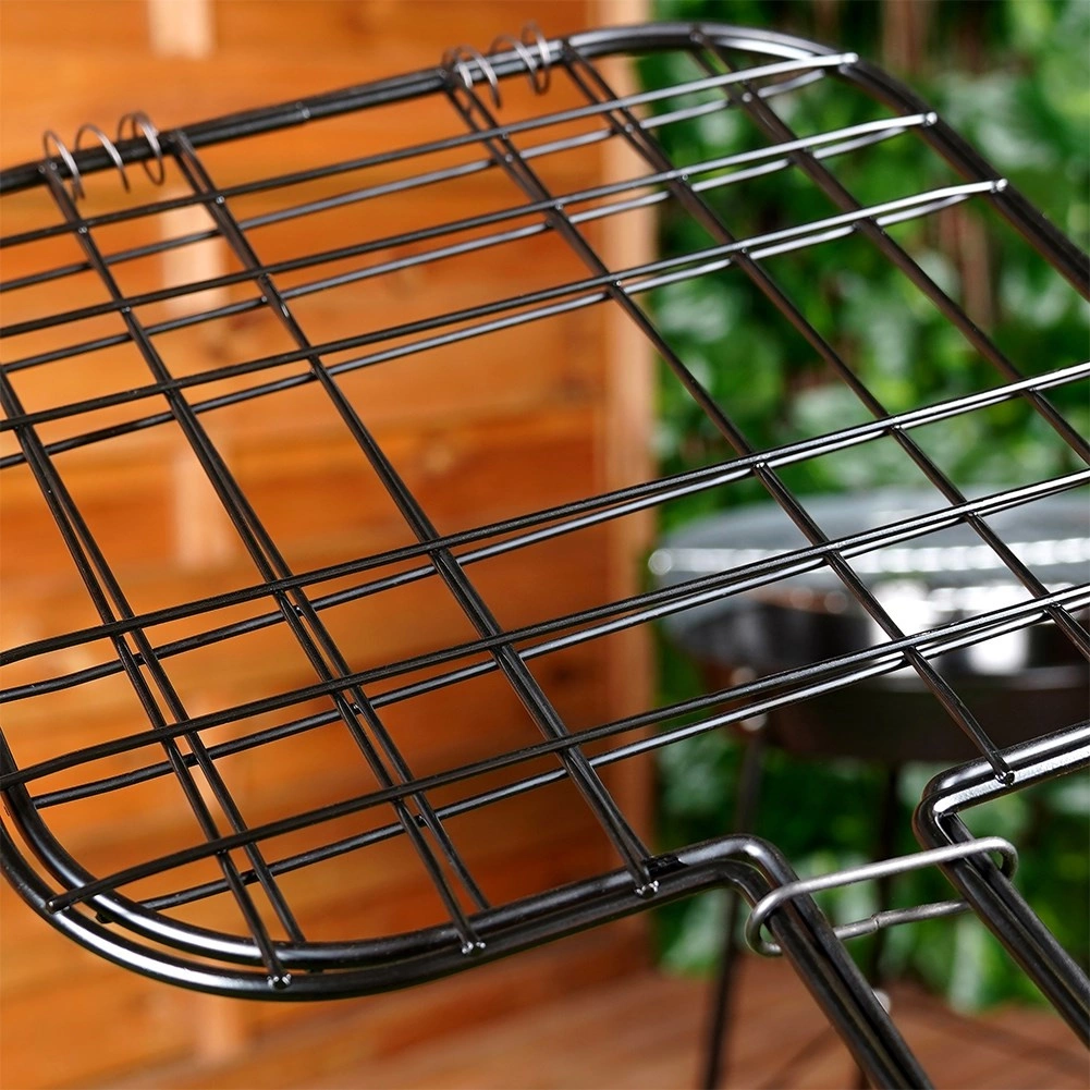 Košara je univerzalna – pogodna za burgere, odreske, ribu i povrće. Preklopna clamshell konstrukcija s čvrstom kopčom drži namirnice na mjestu i omogućuje lako okretanje cijele površine odjednom, pa postižete ravnomjerno pečenje i lijepe tragove rešetke.