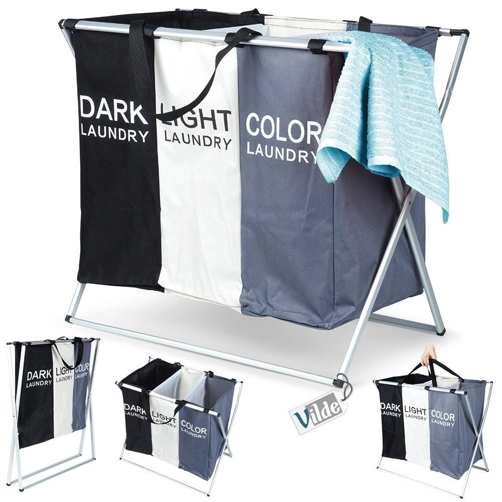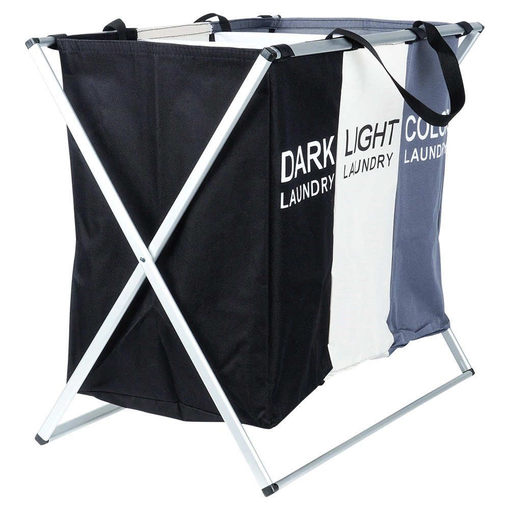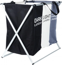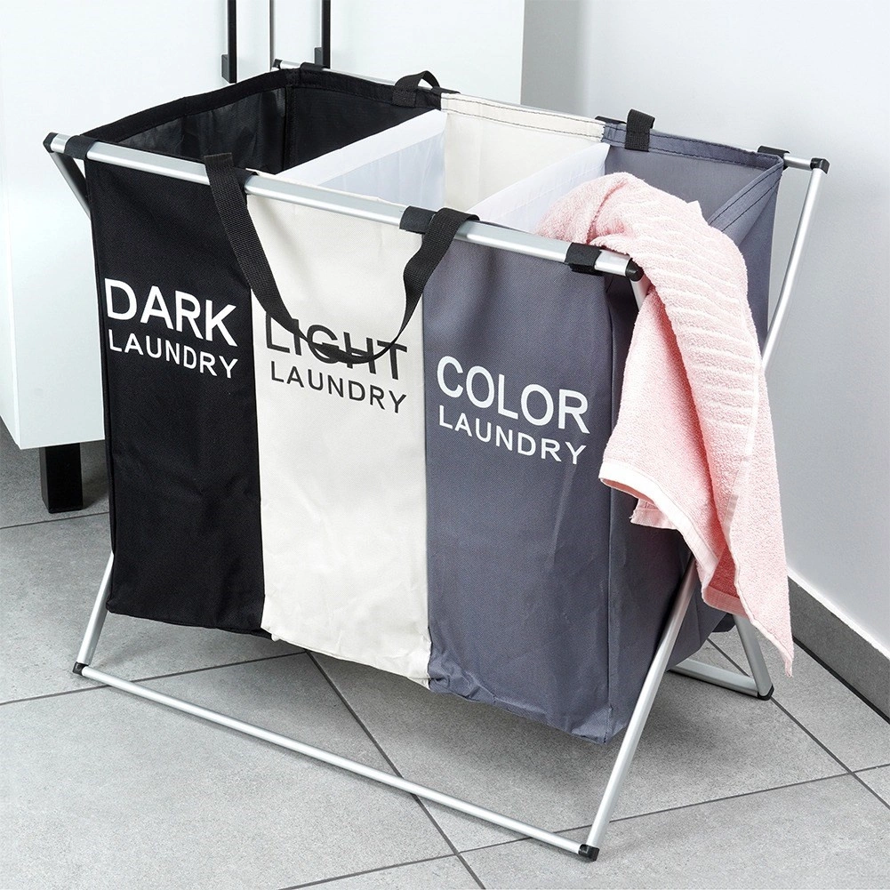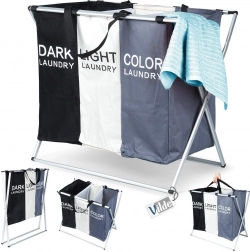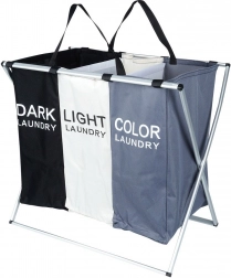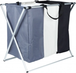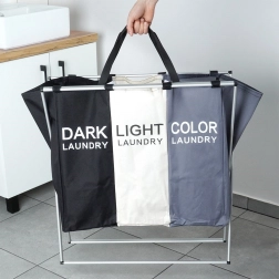 Održavajte red u rublju s preglednom trosobnom košarom koja omogućuje trenutno razvrstavanje na tamno, svijetlo i šareno. Lagani, ali stabilni metalni okvir u srebrnoj boji i čvrste tekstilne vreće osiguravaju dug vijek trajanja i udobnu svakodnevnu upotrebu.