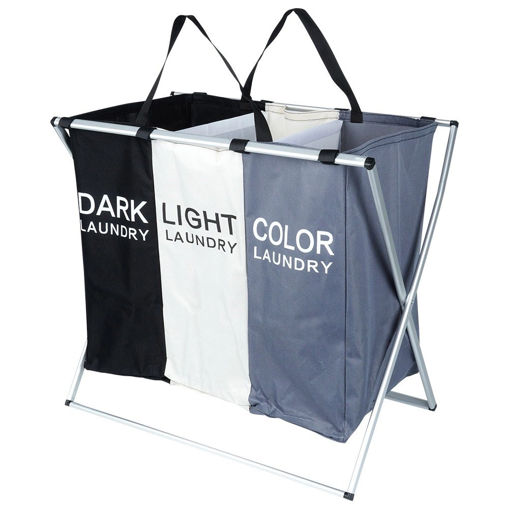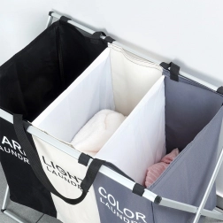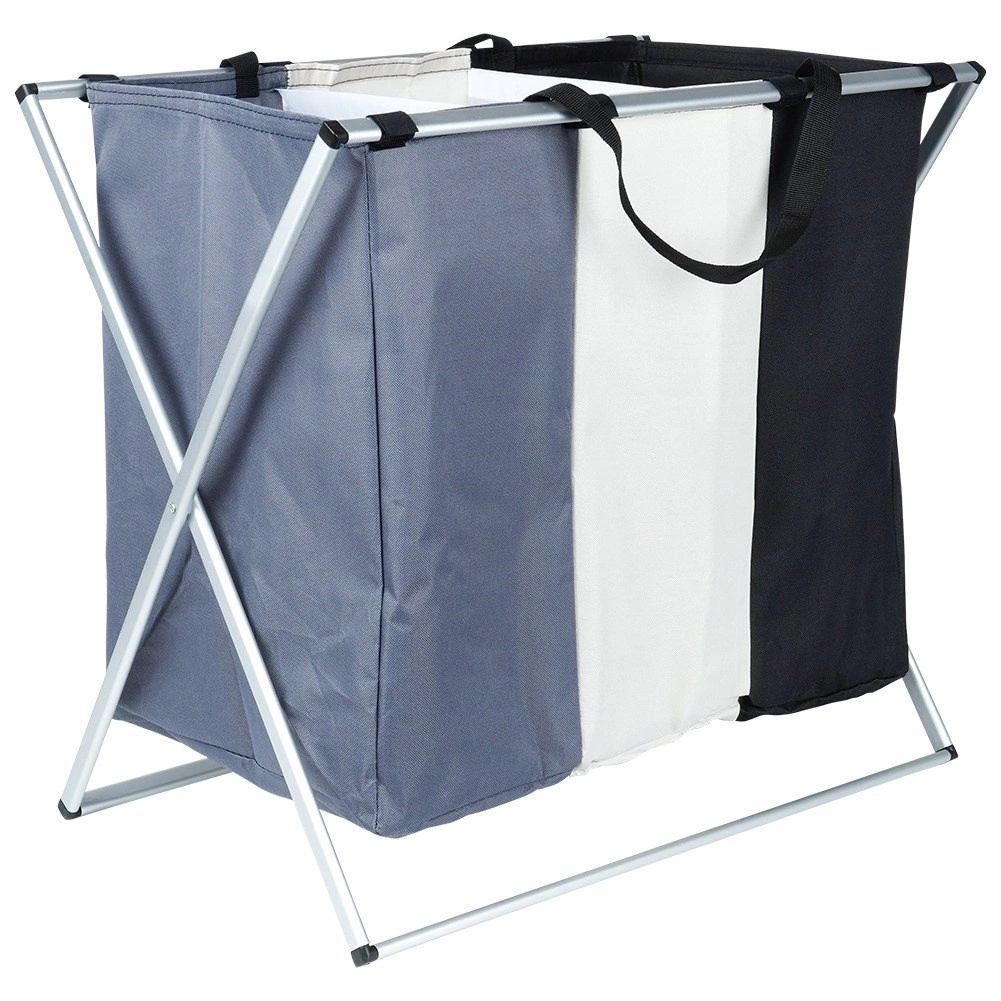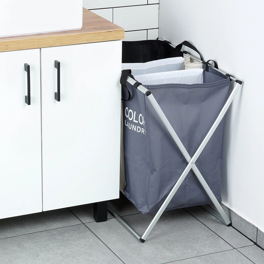 Održavajte red u rublju s preglednom trosobnom košarom koja omogućuje trenutno razvrstavanje na tamno, svijetlo i šareno. Lagani, ali stabilni metalni okvir u srebrnoj boji i čvrste tekstilne vreće osiguravaju dug vijek trajanja i udobnu svakodnevnu upotrebu.