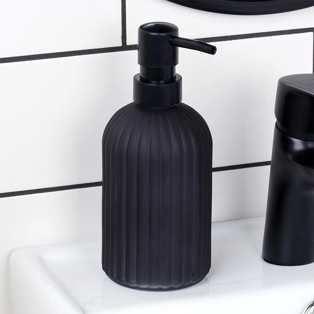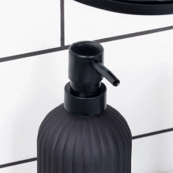Stilski dozator za tekući sapun ili sredstvo za posuđe izrađen je od kvalitetnog stakla u mat crnoj boji. Rebrasto tijelo ne samo da izgleda odlično, već osigurava i protuklizni hvat. Zahvaljujući zapremnini od 400 ml idealan je za svakodnevnu uporabu.