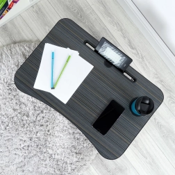 Sklopivi lapdesk idealan je za rad s prijenosnikom ili tabletom, čitanje knjiga i gledanje filmova u krevetu ili na sofi. Izdrživa MDF ploča s ugodnom površinom i metalne noge s gumenim završecima osiguravaju stabilnost i štite površine od ogrebotina.