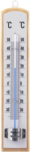 Termometar je izrađen od prirodnog drva i opremljen otvorom za vješanje, pa ga lako postavite na zid. Bijela kontrastna skala i izraženi stupac tekućine osiguravaju izvrsnu čitljivost i s veće udaljenosti.