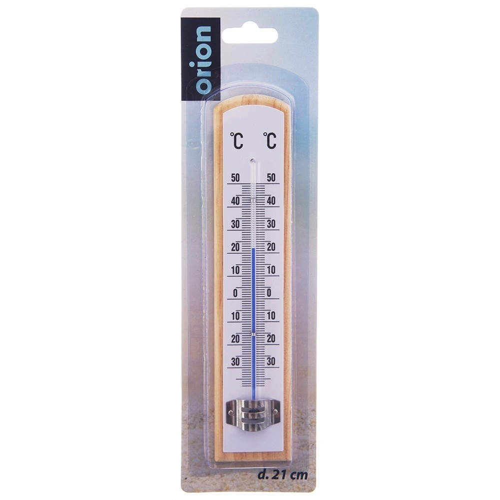 Univerzalni drveni termometar za mjerenje temperatura u zatvorenom i na otvorenom s čitljivom skalom od -38 °C do 50 °C. Klasičan dizajn, prirodno drvo, mogućnost vješanja na zid i lako očitavanje temperature na balkonu, terasi i u interijeru.