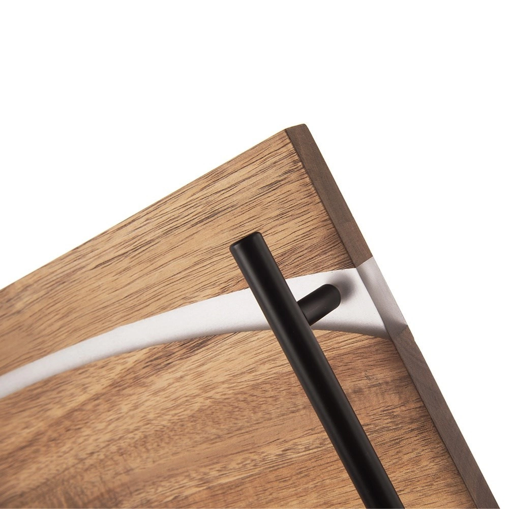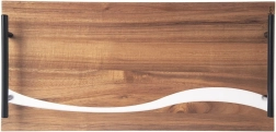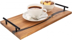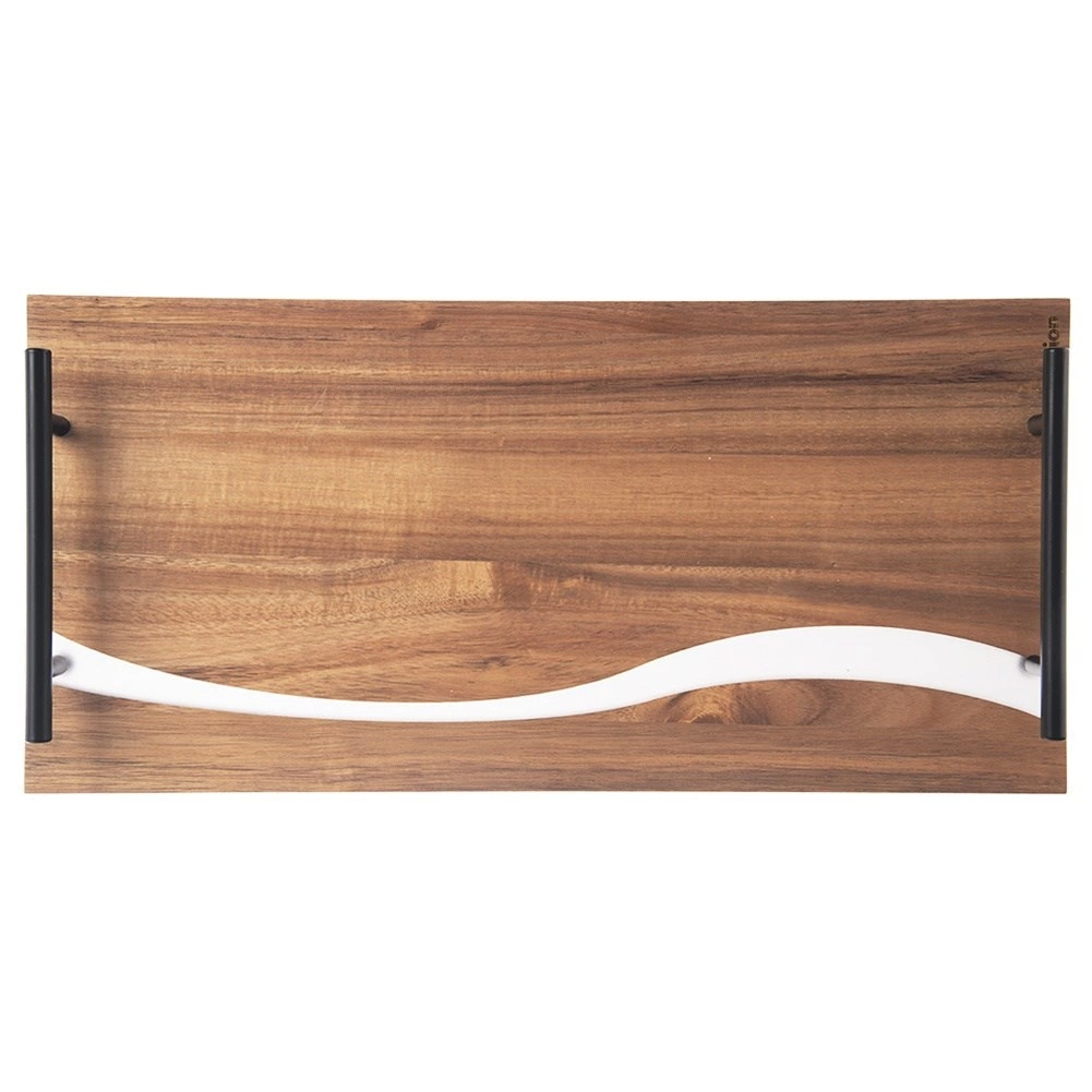 Pravokutni pladanj RIVER spaja prirodno bagremovo drvo s dizajnerskom smolom koja stvara jedinstveni „riječni“ efekt. Zahvaljujući metalnim ručkama u crnoj boji, udobno ćete prenijeti šalice, čajnik, čaše i tanjuriće. Izvrstan je za svakodnevno posluživanje i svečane trenutke.