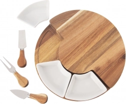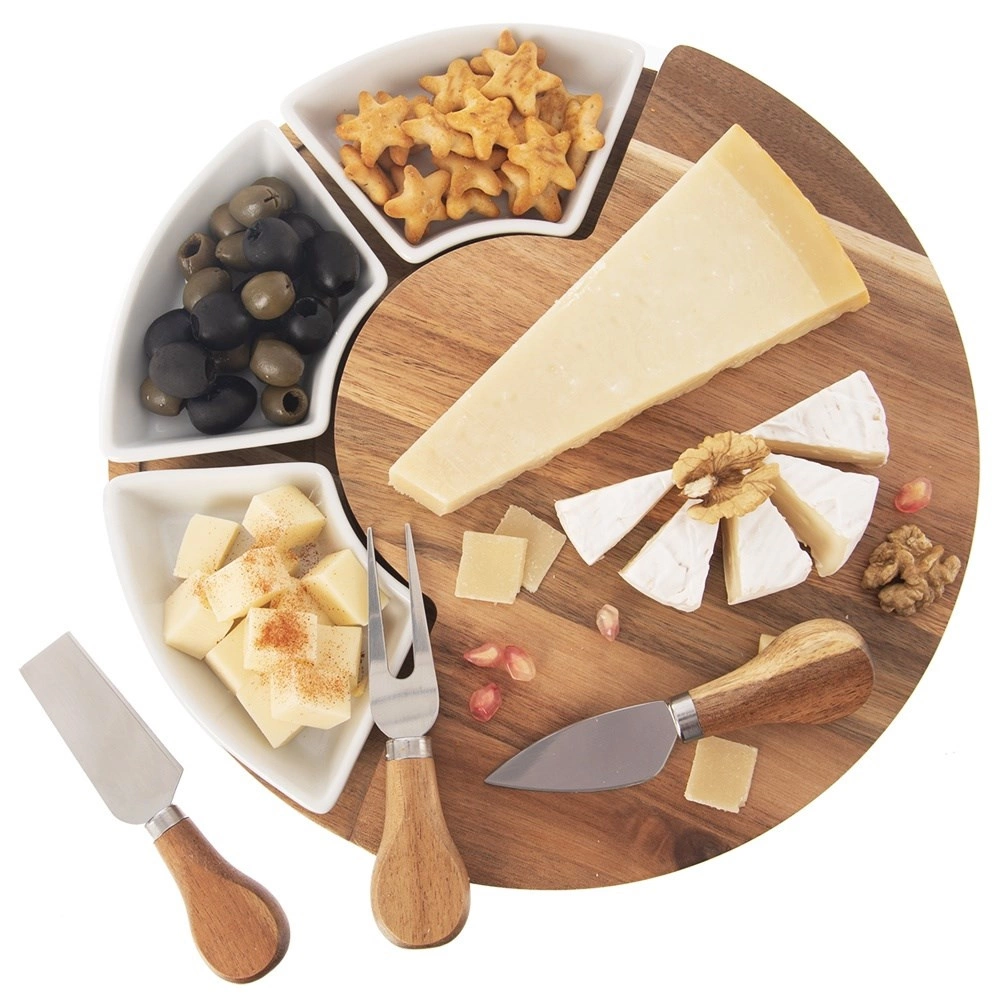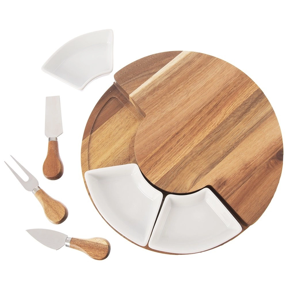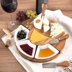 Zahvaljujući trima alatima (nožić, lopatica i vilica) lako ćete obraditi meke, polutvrde i tvrde sireve. Tri keramičke zdjelice poslužit će za umake, chutney, masline ili orašaste plodove, pa ćete u trenu kreirati impresivnu sirnu platu. Prirodna akacija daje izdržljivost i atraktivnu strukturu drva, a keramika je higijenska i jednostavna za čišćenje.