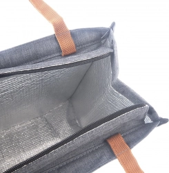 Ova stilska termotorba zapremnine 14 litara pouzdano održava hladna i topla jela zahvaljujući kvalitetnoj termoizolaciji. Robustni sivi poliester otporan je na habanje, smeđe ručke ugodno leže u ruci, a patentni zatvarač duž cijele duljine olakšava pristup sadržaju. Praktični stražnji džep s patentnim zatvaračem prima sitnice, ključeve ili maramice.