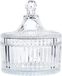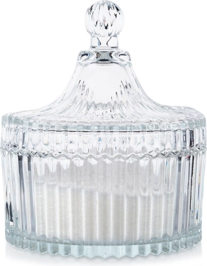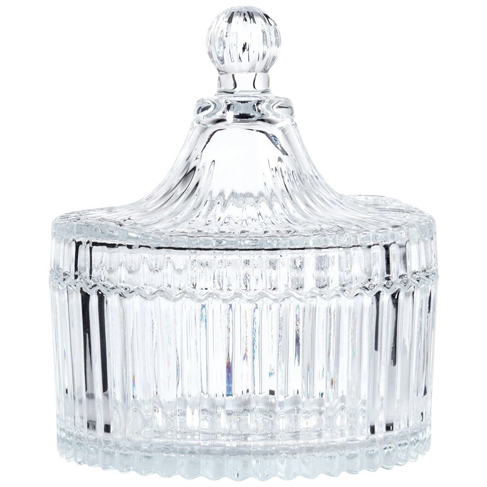 Ova posudica za šećer spaja funkcionalnost i bezvremenski dizajn. Vertikalno rebranje i nježno fasetirani detalji daju posudi luksuzan izgled, dok prozirno staklo omogućuje lak nadzor sadržaja. Visina bez poklopca je 5 cm, pa se lako uklapa na stol i policu.