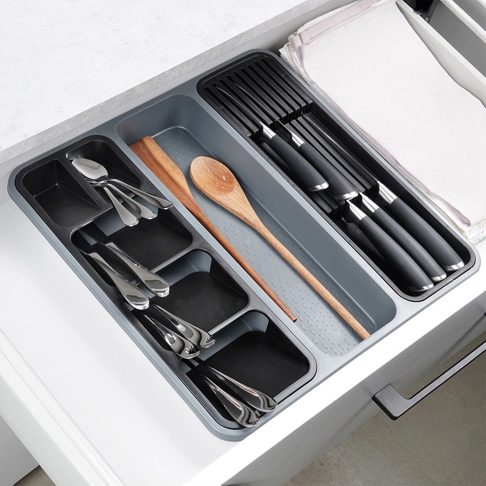 Dva izvadiva modula omogućuju vam savršeno razdvajanje pribora za jelo i noževa. Lako se vade, čiste i prilagođavaju trenutačnim potrebama.
