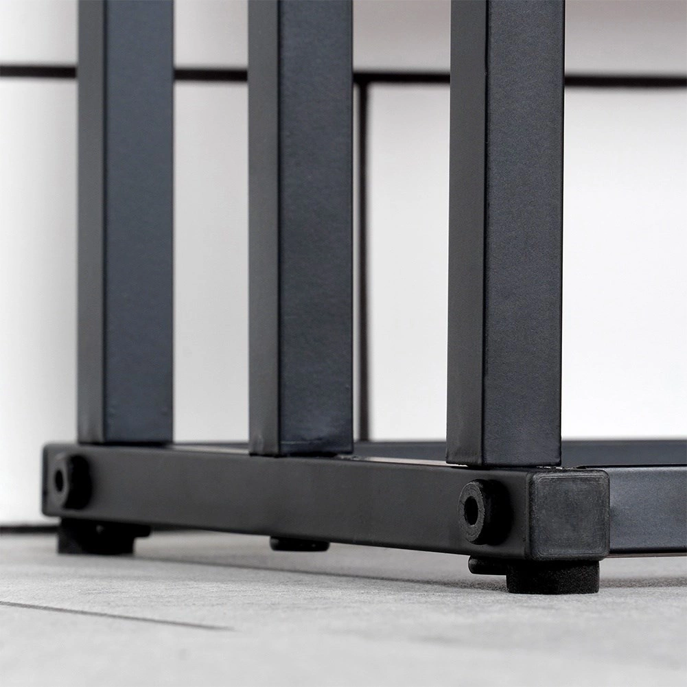 Prašno lakirani metal u crnoj boji osigurava izdržljivost, minimalistički izgled i jednostavno održavanje.