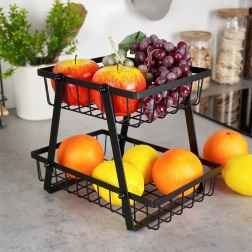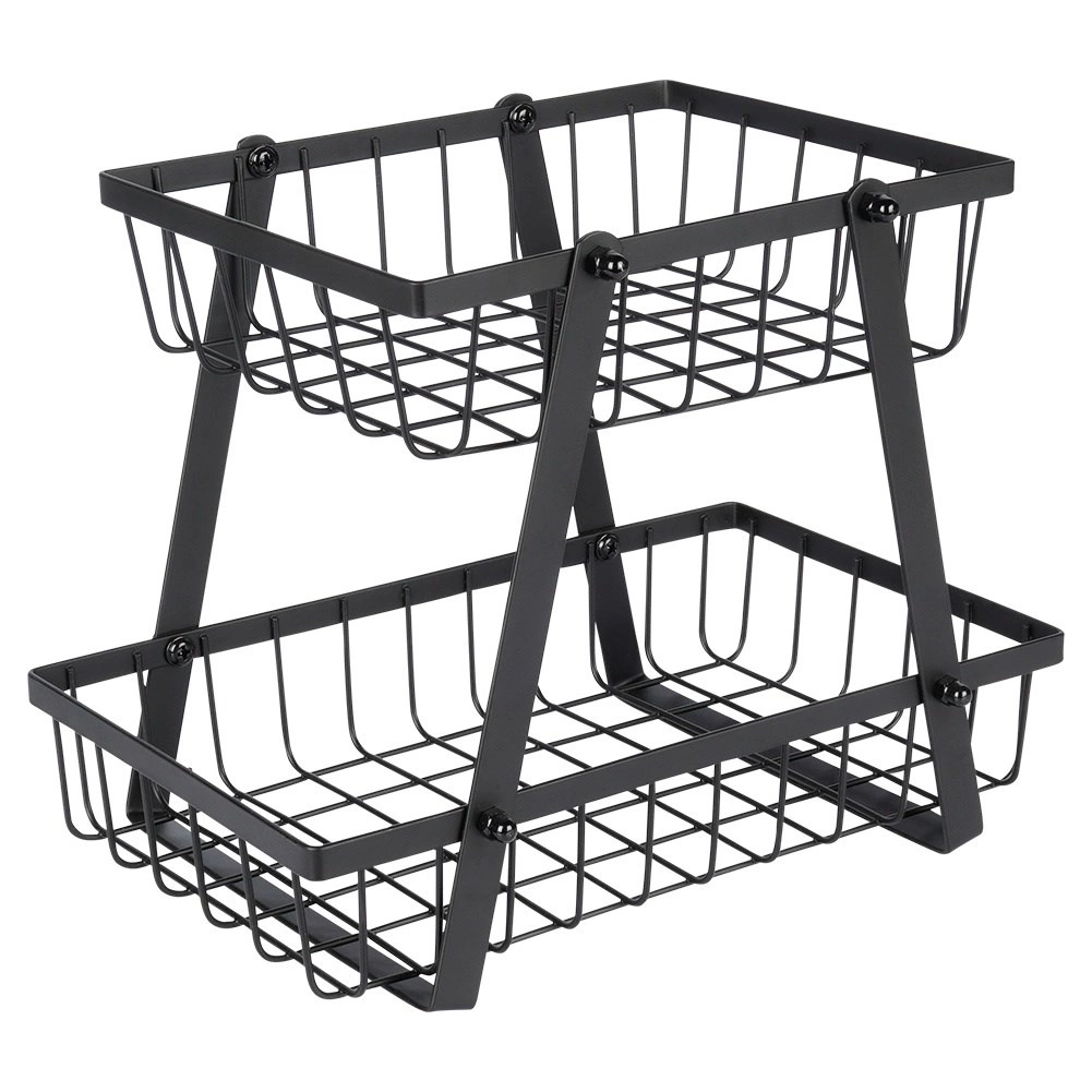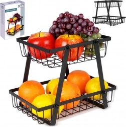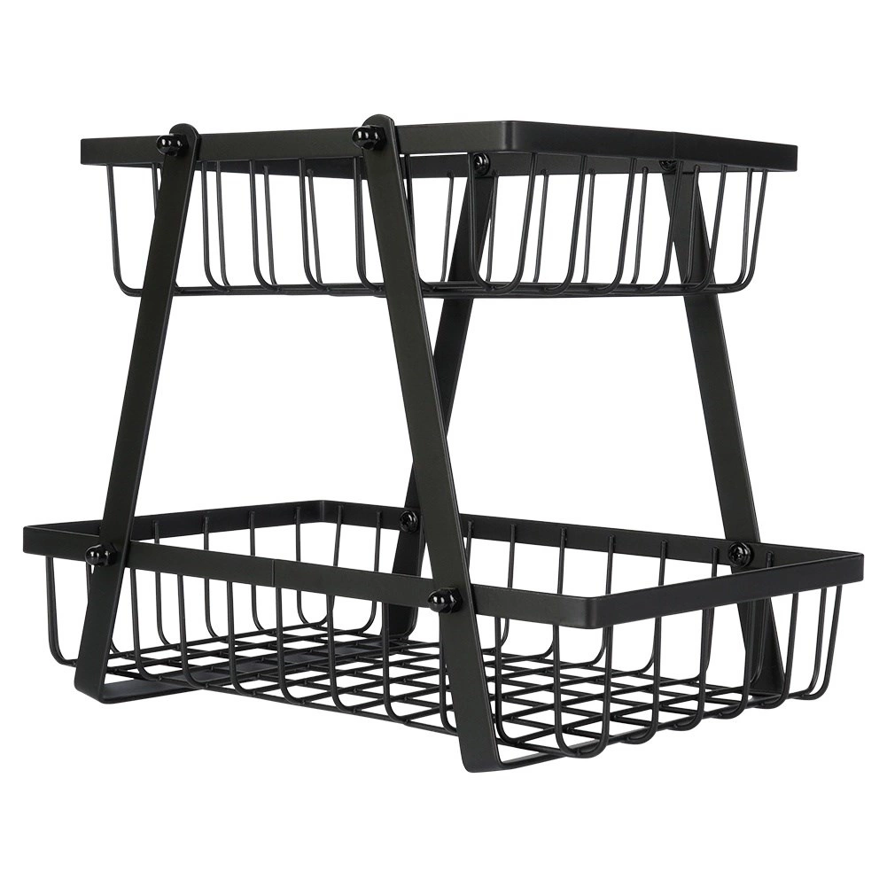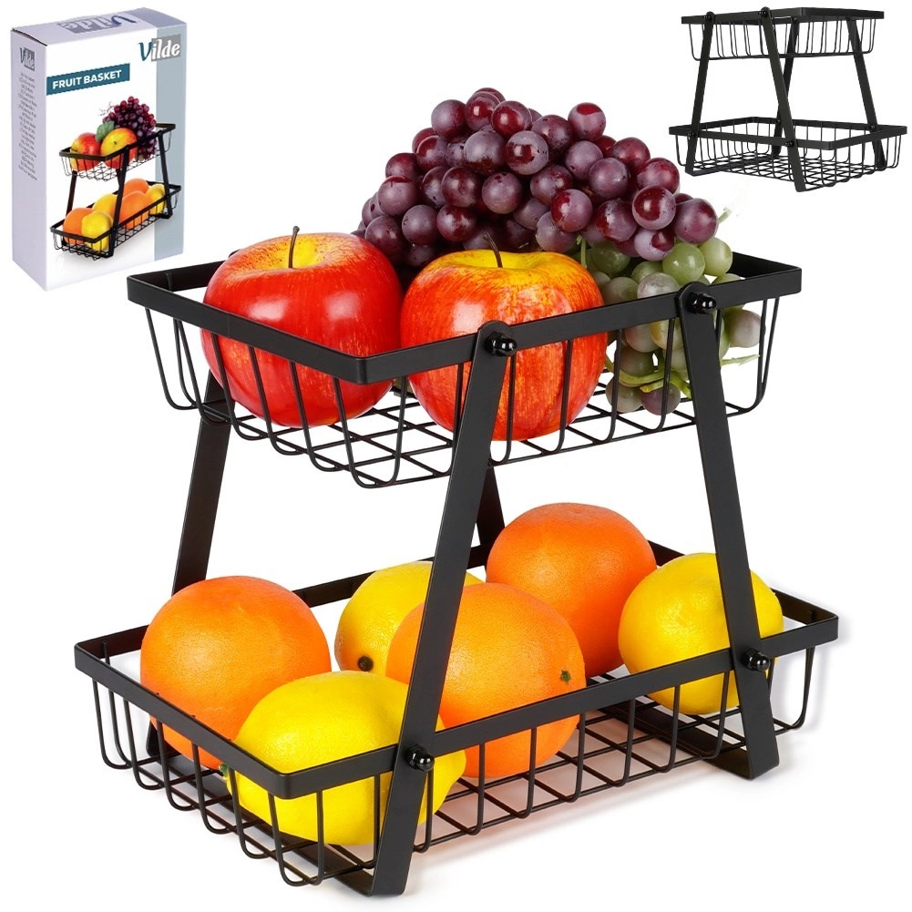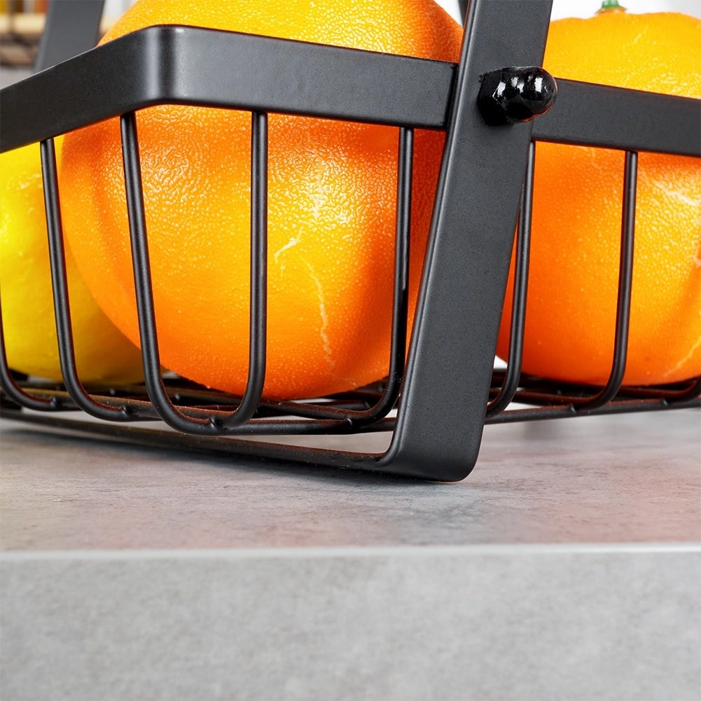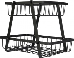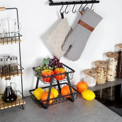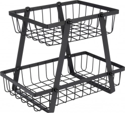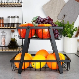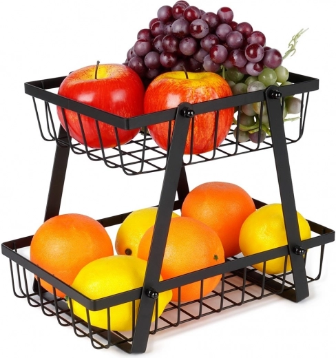 Stilizan i praktičan pomoćnik za svaku kuhinju: dvoslojni stalak sa žičanim košarama u industrijskom loft stilu štedi prostor i ujedno lijepo izlaže vaše voće i povrće. Otvorene stranice potiču strujanje zraka pa plodovi ostaju dulje svježi i na dohvat ruke.