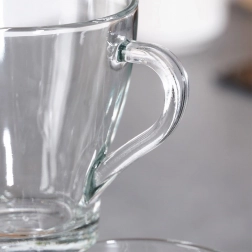 Kristalno čiste stijenke naglašavaju boje čaja ili kave, dok debelo staklo povećava otpornost i trajnost pri svakodnevnoj upotrebi.