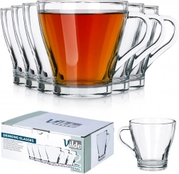 Set od šest univerzalnih čaša s ručkom marke VILDE idealan je za čaj, kavu, vodu, sok i miješana pića. Prozirne stijenke ističu boju napitka, a debelo staklo osigurava otpornost i stabilnost. Zahvaljujući udobnoj ručki čaše se sigurno drže i pri posluživanju vrućih napitaka.