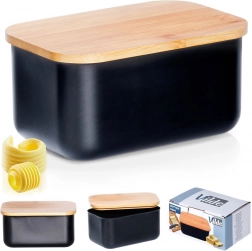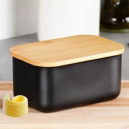 Ova stilska posudica izrađena je od kvalitetnog čelika s mat crnom završnom obradom i dopunjena bambusovim poklopcem. Zahvaljujući tome odlično spaja moderan izgled i funkcionalnost – maslac ostaje zaštićen od zraka i mirisa iz hladnjaka, kako bi duže ostao svjež i ukusan.