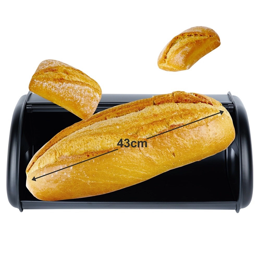 Elegantna crna kutija za kruh od nehrđajućeg čelika čuva vaše pekarske proizvode dulje svježima. Zahvaljujući kliznom poklopcu pristup je brz i udoban, prahom lakirani metal osigurava izdržljivost, a prostrano izvedenje prima kruh, kifle i peciva različitih veličina. Stilski dodatak koji se odlično uklapa u svaku kuhinju.