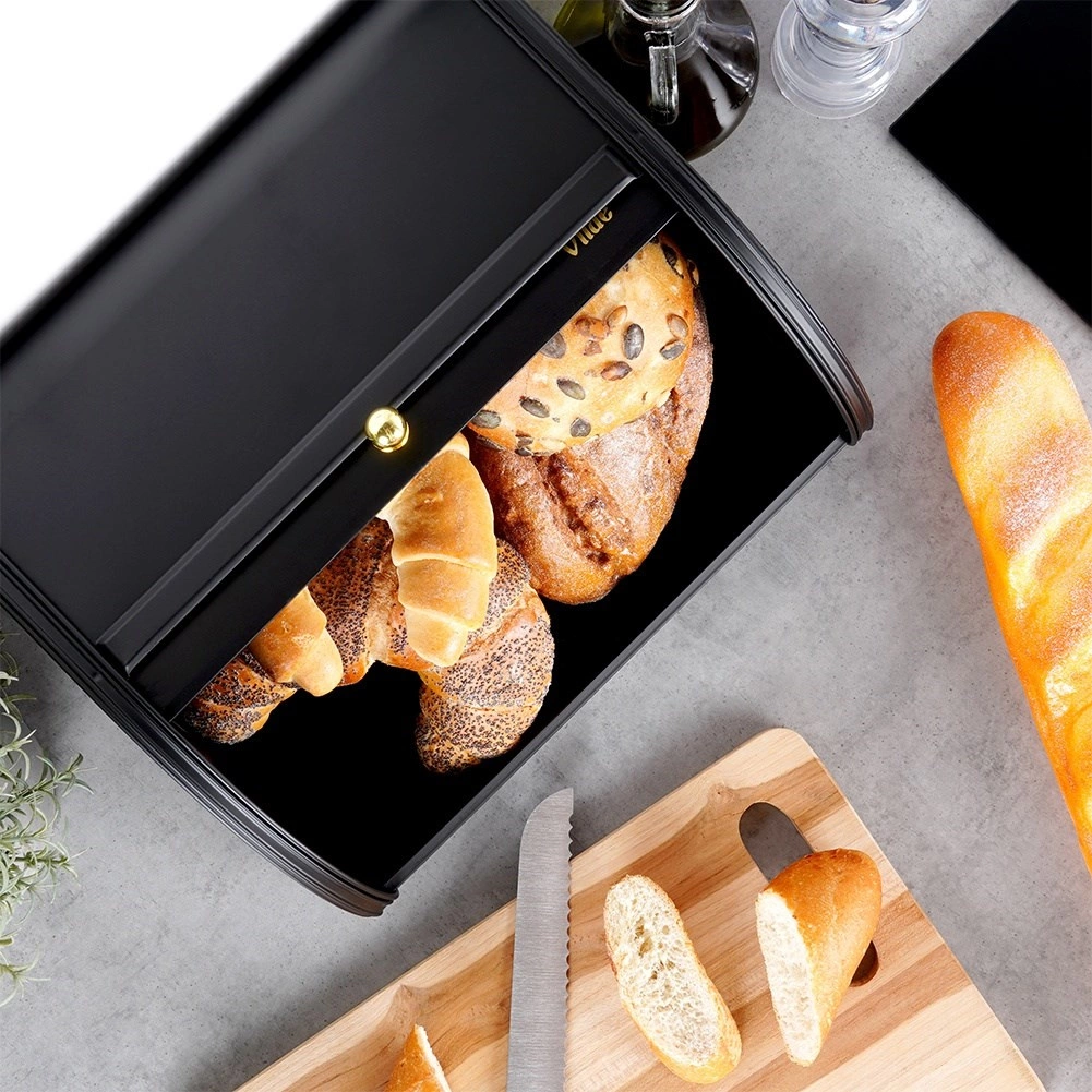 Elegantna kutija za kruh s modernim dizajnom štiti pecivo od pristupa zraka, isušivanja i mehaničkih oštećenja. Praškasto lakirani nehrđajući čelik u mat crnoj izvedbi lako se održava i vašoj radnoj plohi daje čist, bezvremenski izgled.