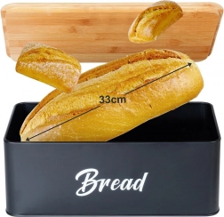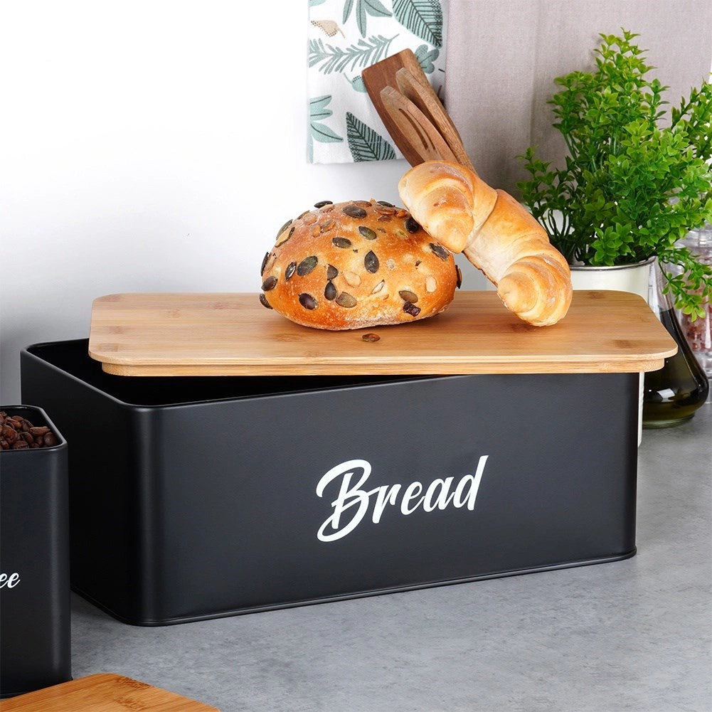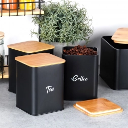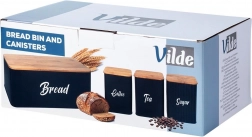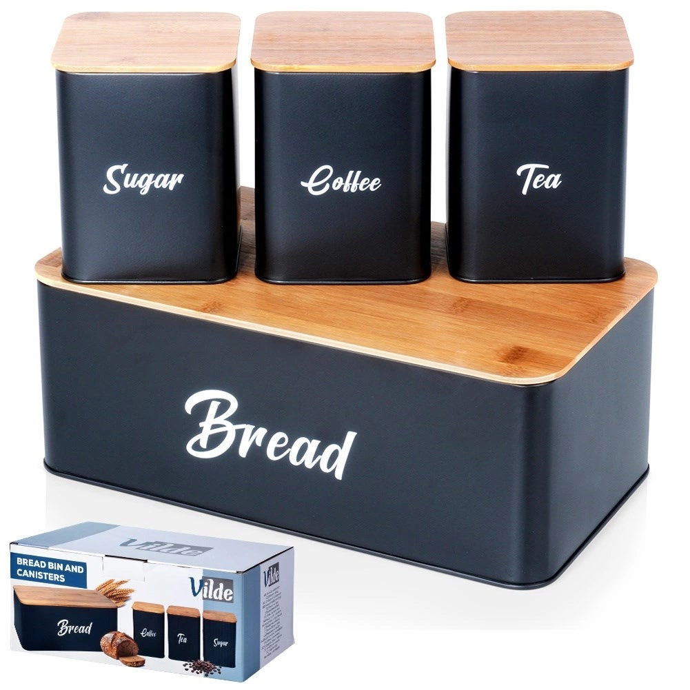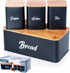 Kutija za kruh od izdržljivog metala premazanog praškastom bojom ističe se čistim linijama i praktičnim poklopcem od bambusova drva koji se može koristiti kao daska za rezanje. Metalna konstrukcija štiti peciva od gnječenja i smanjuje isušivanje. Tri usklađene posude s bambusnim poklopcima čuvaju šećer, kavu i čaj dulje aromatičnima i uredno uloženima.