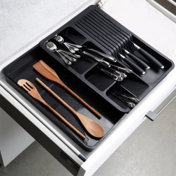 Bočni izvlačni dio stvara dodatno mjesto za žlice za kuhanje, pjenjače i drugi pribor. Iskoristite ladicu maksimalno bez nereda.