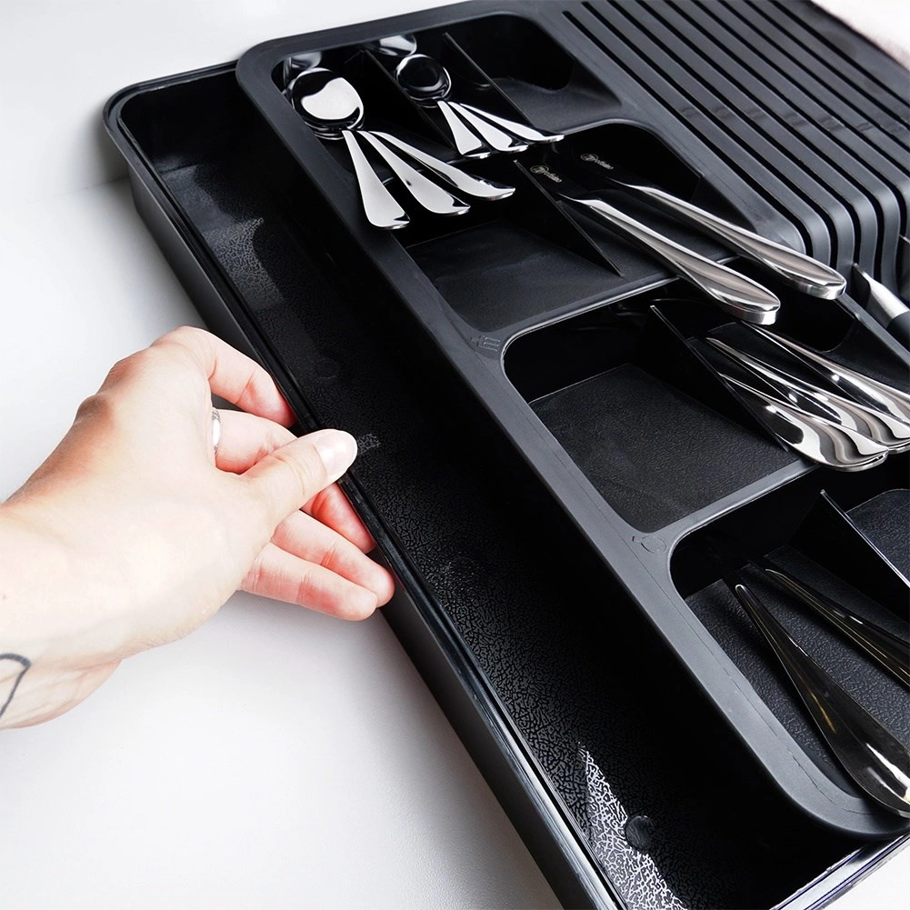 Više odjeljaka za žlice, vilice, noževe i duže alate. Svaka stvar ima svoje mjesto, a ladica ostaje uredna.
