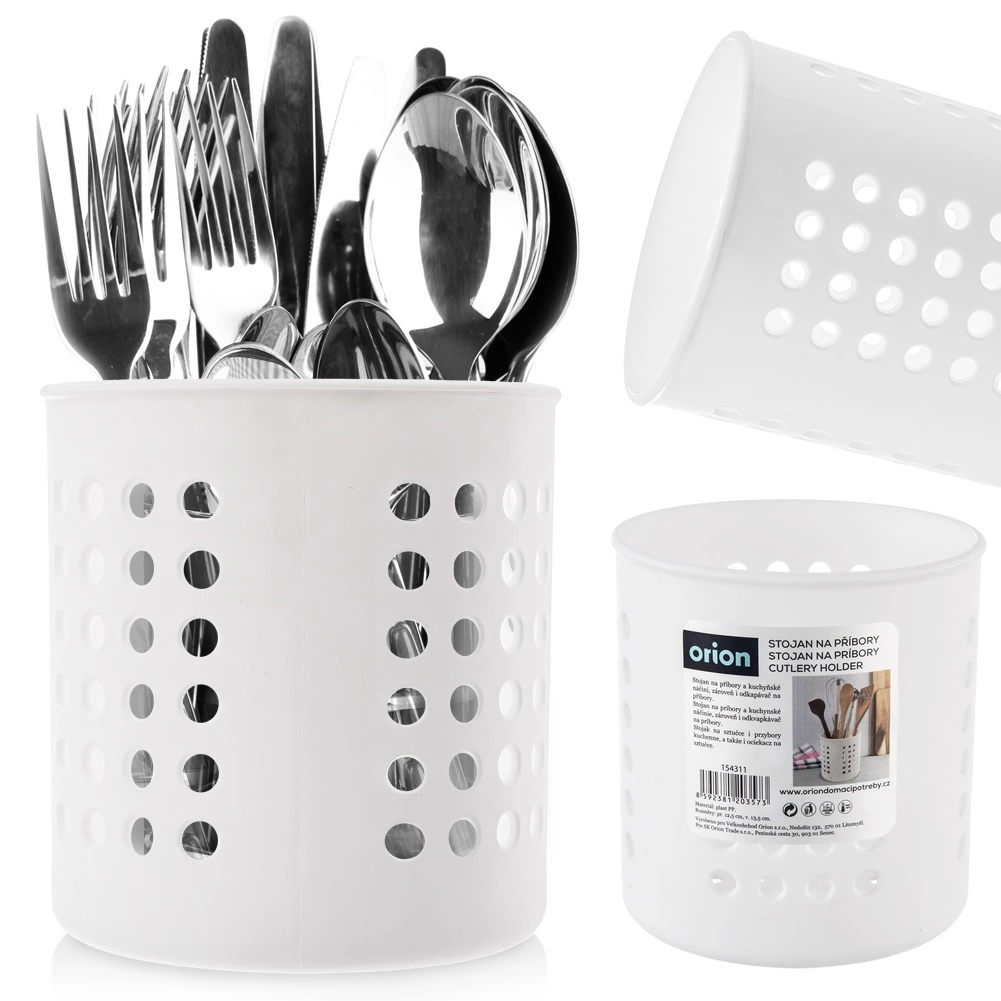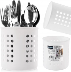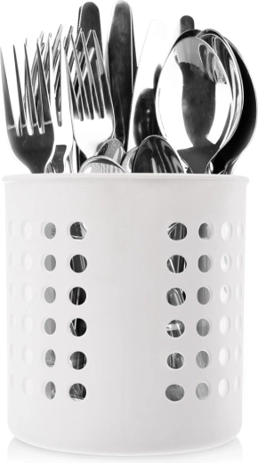 Održavajte kuhinju bez nereda s univerzalnim stalkom koji služi kao ocjeđivač za pribor za jelo i organizer za kuhinjski pribor. Perforacija po cijelom obodu i na dnu pomaže odvesti vlagu, pa žlice, vilice, noževi i pjenjače brže se suše i ostaju higijenski pohranjeni.