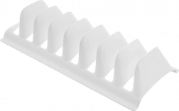 Stalak prima do 8 komada posuđa, a ravnomjerno raspoređene pregrade sprječavaju međusobni dodir i ogrebotine. Izdržljivo plastično kućište nudi dug vijek trajanja i bezbrižno održavanje – nakon uporabe jednostavno ga stavite u perilicu posuđa.