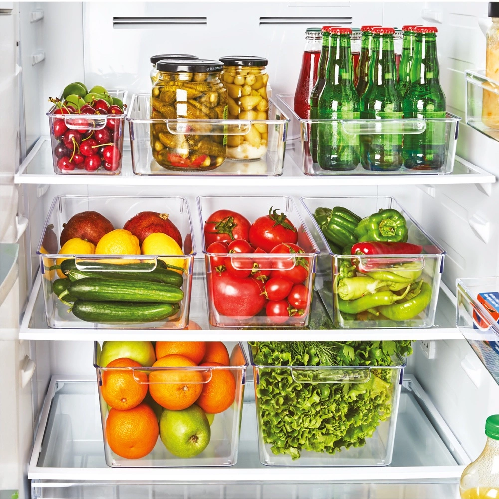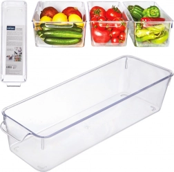 Ovaj praktičan kuhinjski organizator od kvalitetne prozirne plastike olakšava razvrstavanje i pohranu namirnica u hladnjaku i smočnici. Transparentna izvedba osigurava trenutačan pregled sadržaja, a integrirana bočna ručka omogućuje lako izvlačenje i prenošenje. Bez poklopca je, pa imate brz pristup namirnicama.