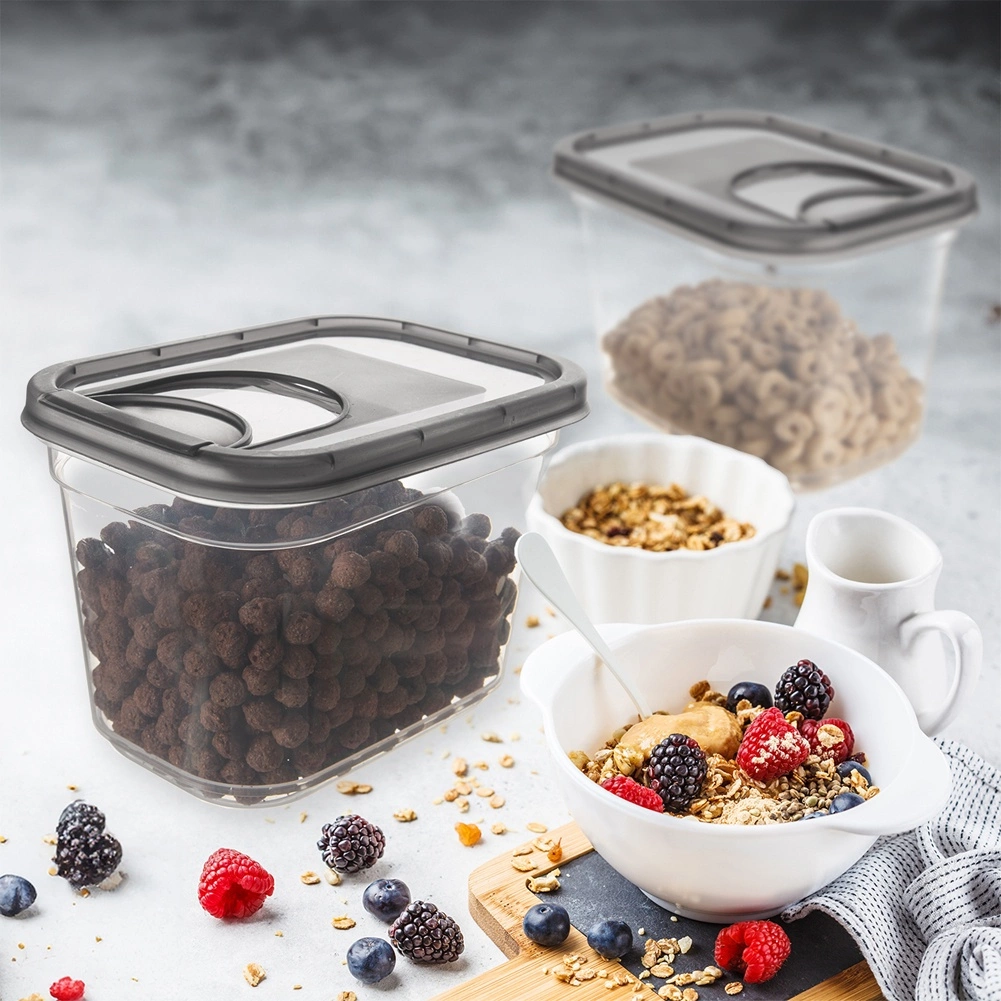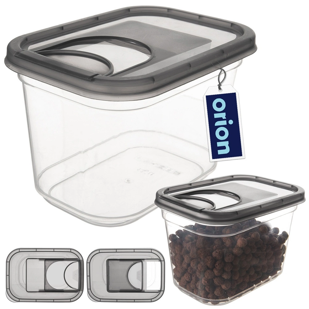Integrirani preklopni poklopac omogućuje brzo i precizno istresanje sadržaja – idealno za žitarice, tjesteninu ili granule za kućne ljubimce.