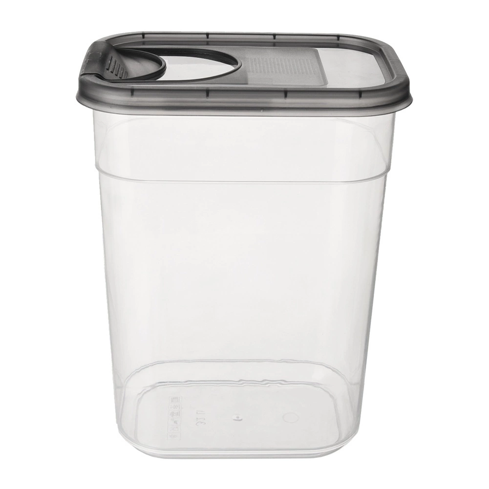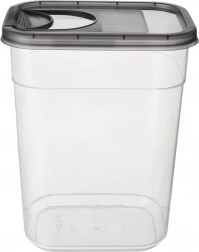 Ova posuda iz linije Grey idealna je za svakodnevno skladištenje namirnica kao što su tjestenina, kava, müsli, orašasti plodovi, mahunarke ili žitarice. Zahvaljujući prozirnom dizajnu uvijek odmah vidite sadržaj i količinu, dok poklopac s brtvom i preklopnim dozatorom olakšava precizno sipanje bez nereda.