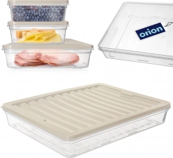 Održavajte red u hladnjaku i smočnici s niskom kutijom za hranu zapremine 2 l. Prozirno tijelo omogućuje trenutni uvid u sadržaj bez otvaranja, a kremasti poklopac osigurava sigurno i higijensko zatvaranje. Nizak profil savršen je za odlaganje narezanih sireva, šunki, salama i drugih pažljivo pripremljenih zalogaja.