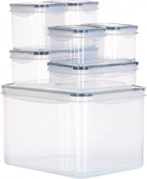 Ovaj univerzalni set uključuje pet veličina za pohranu namirnica, jela i užina. Prozirna izvedba omogućuje brz uvid u sadržaj bez otvaranja, a četiri bočne kopče sa silikonskom brtvom osiguravaju pouzdanu nepropusnost pri skladištenju i prenošenju.