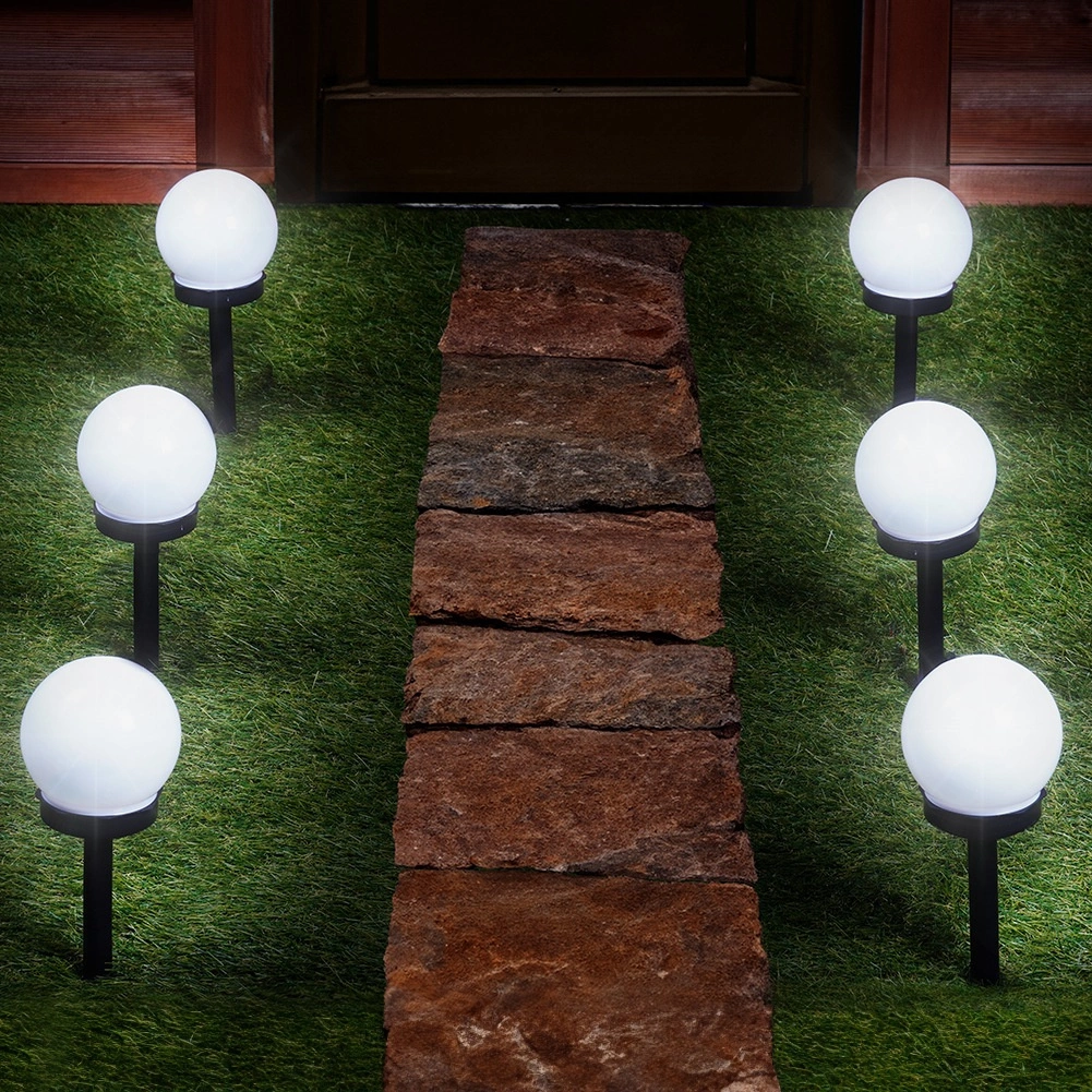 Set od šest globus-svjetiljki ravnomjerno osvjetljava staze i vrtne površine. IP44 otpornost za vanjsku uporabu.