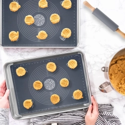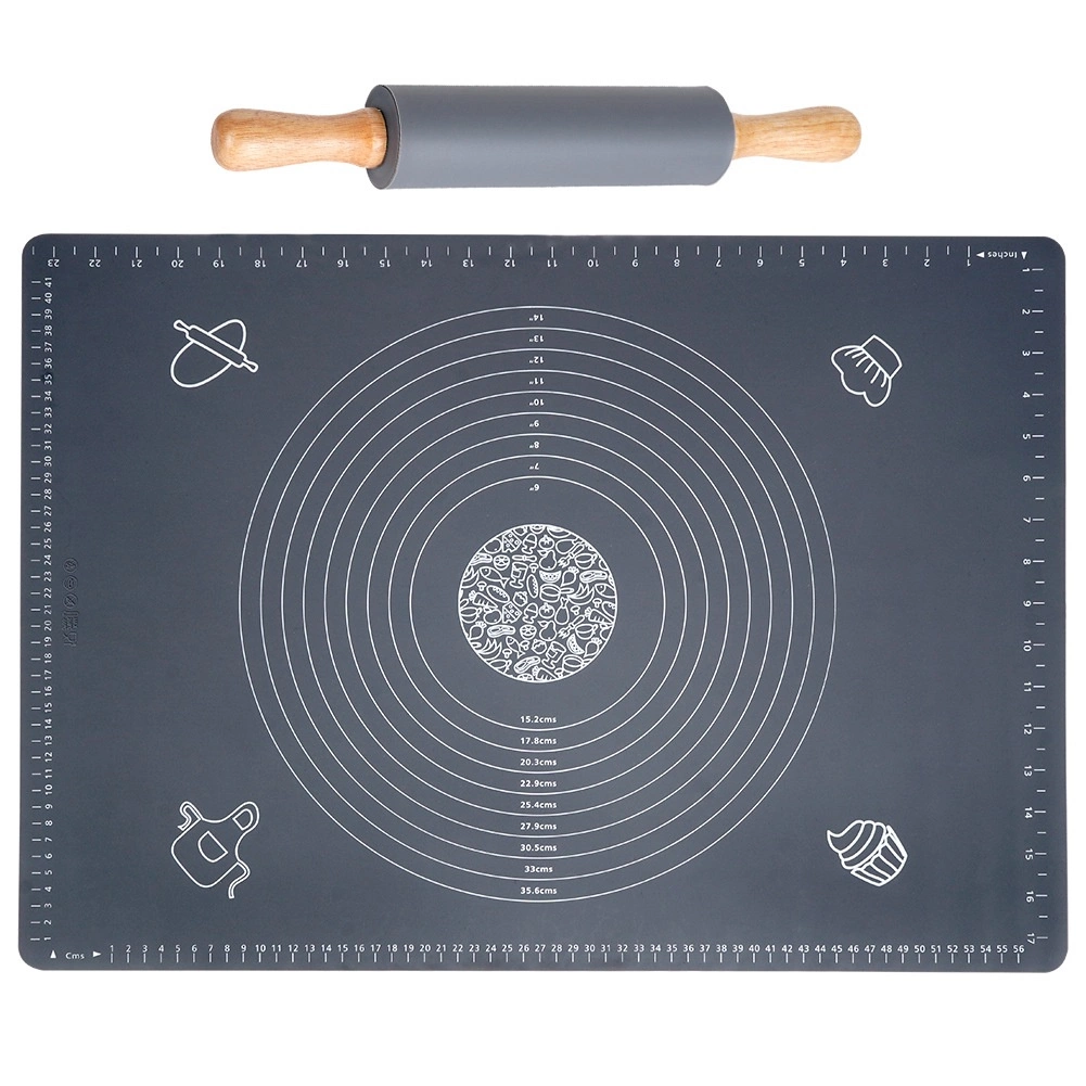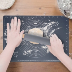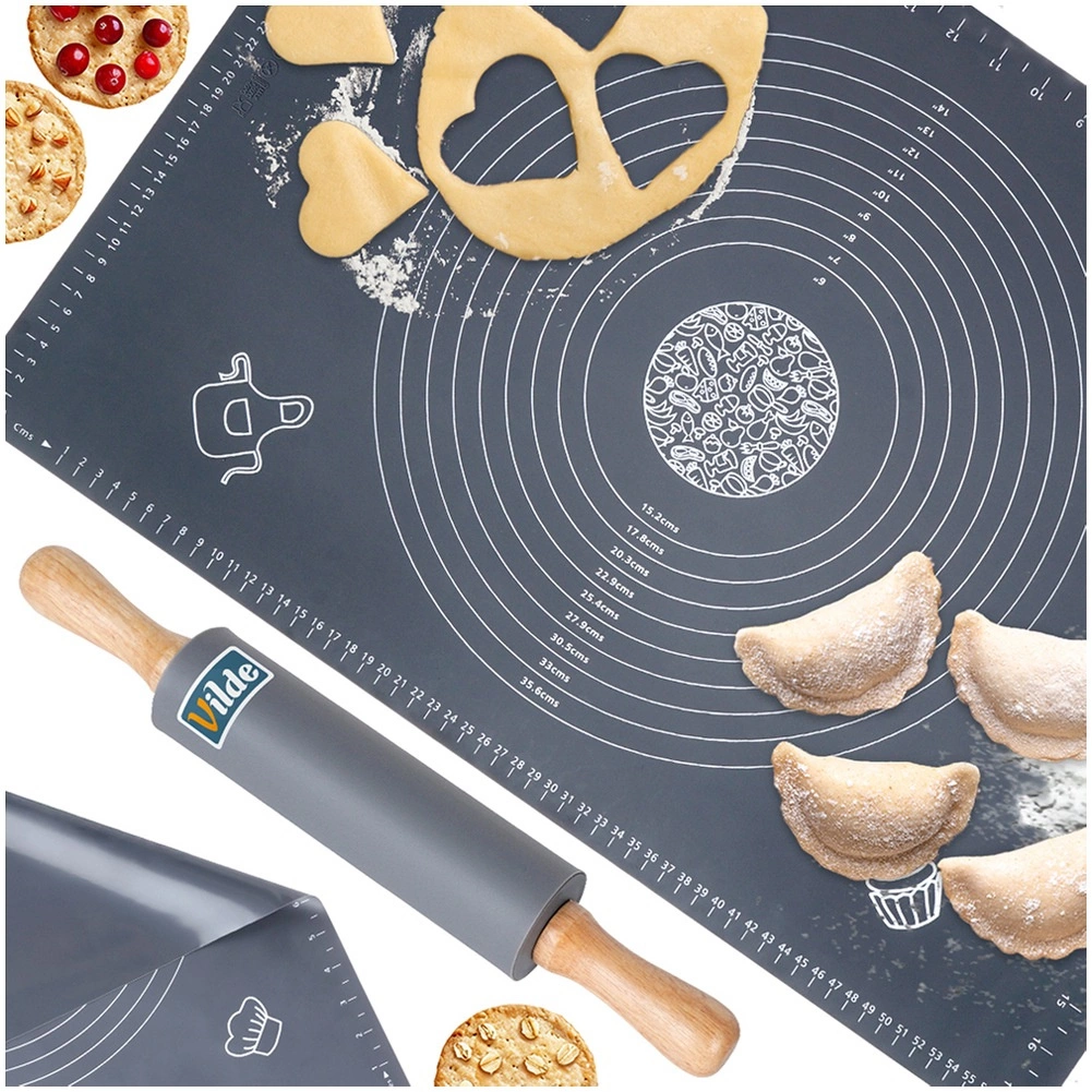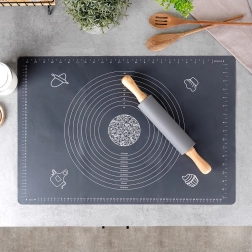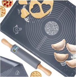 Ovaj univerzalni set od visokokvalitetnog silikona u elegantnoj sivoj boji idealan je za pripremu tijesta za pite, pizzu, kekse, tjesteninu i knedle. Podloga je neljepljiva i protuklizna, pa čvrsto stoji na radnoj plohi i tijesto se ne lijepi. Lako se čisti, ne upija mirise i brzo se suši.