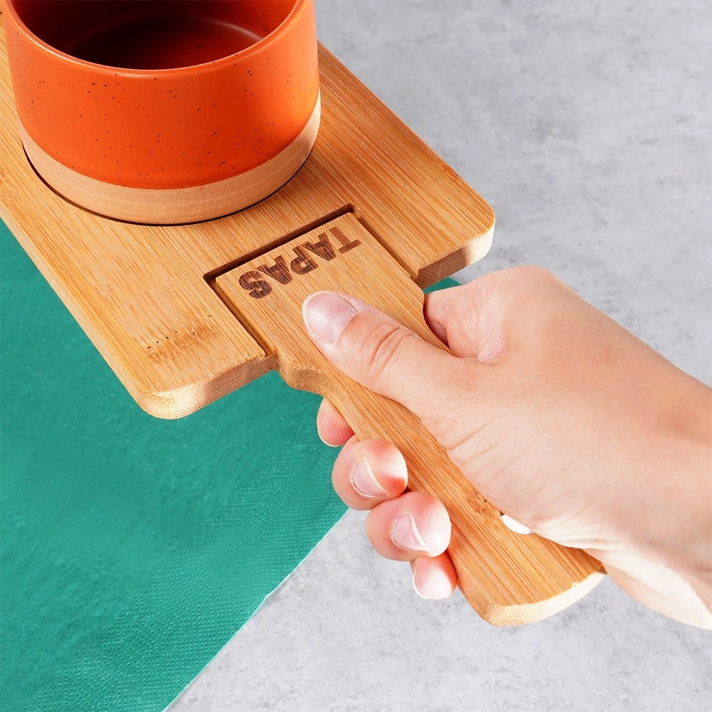 Podloga od prirodnog bambusa s izdubljenim mjestima za zdjelice osigurava stabilnost pri posluživanju i prenošenju te stolu daje prirodan akcent.