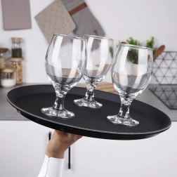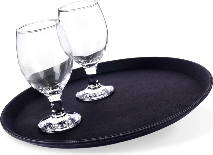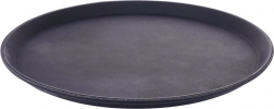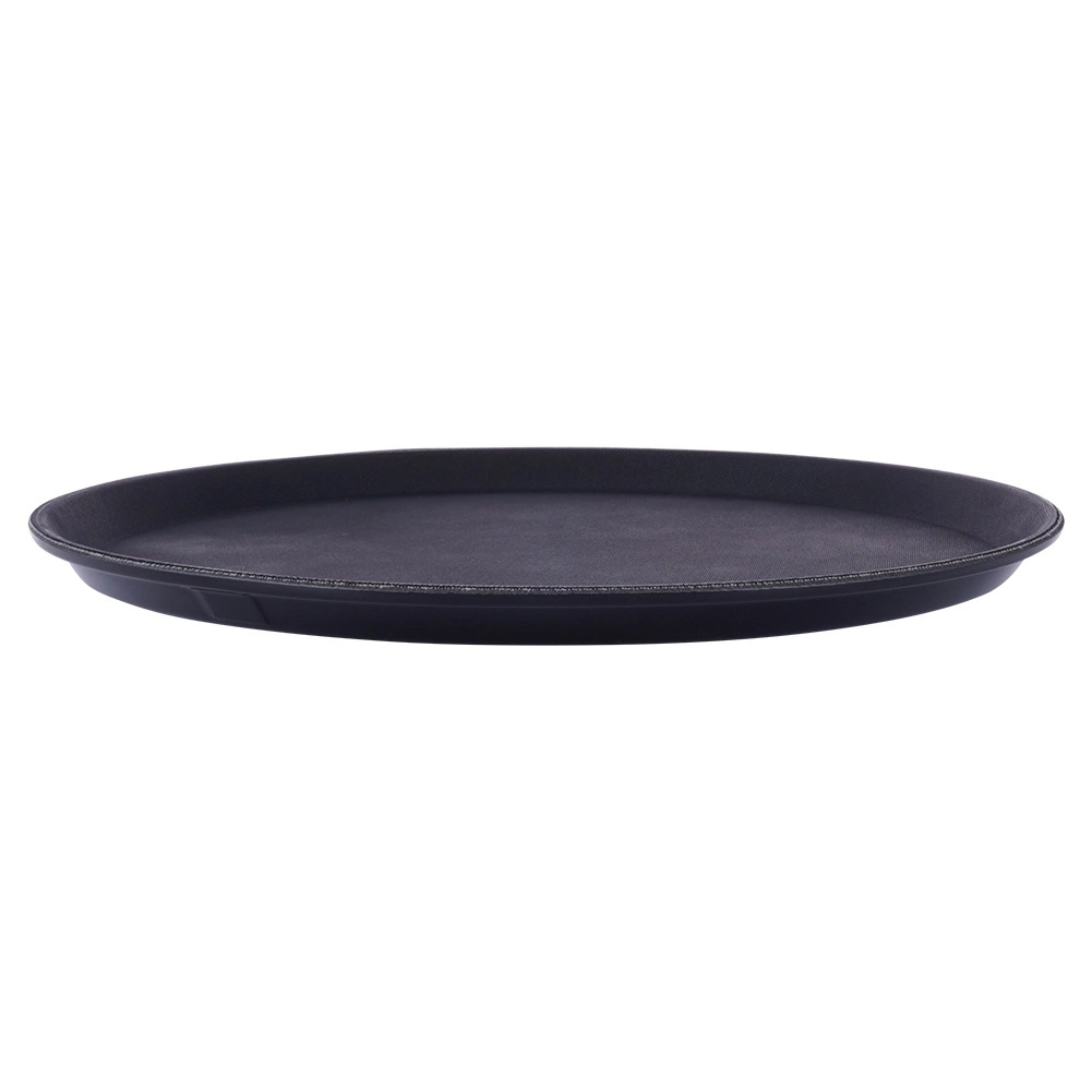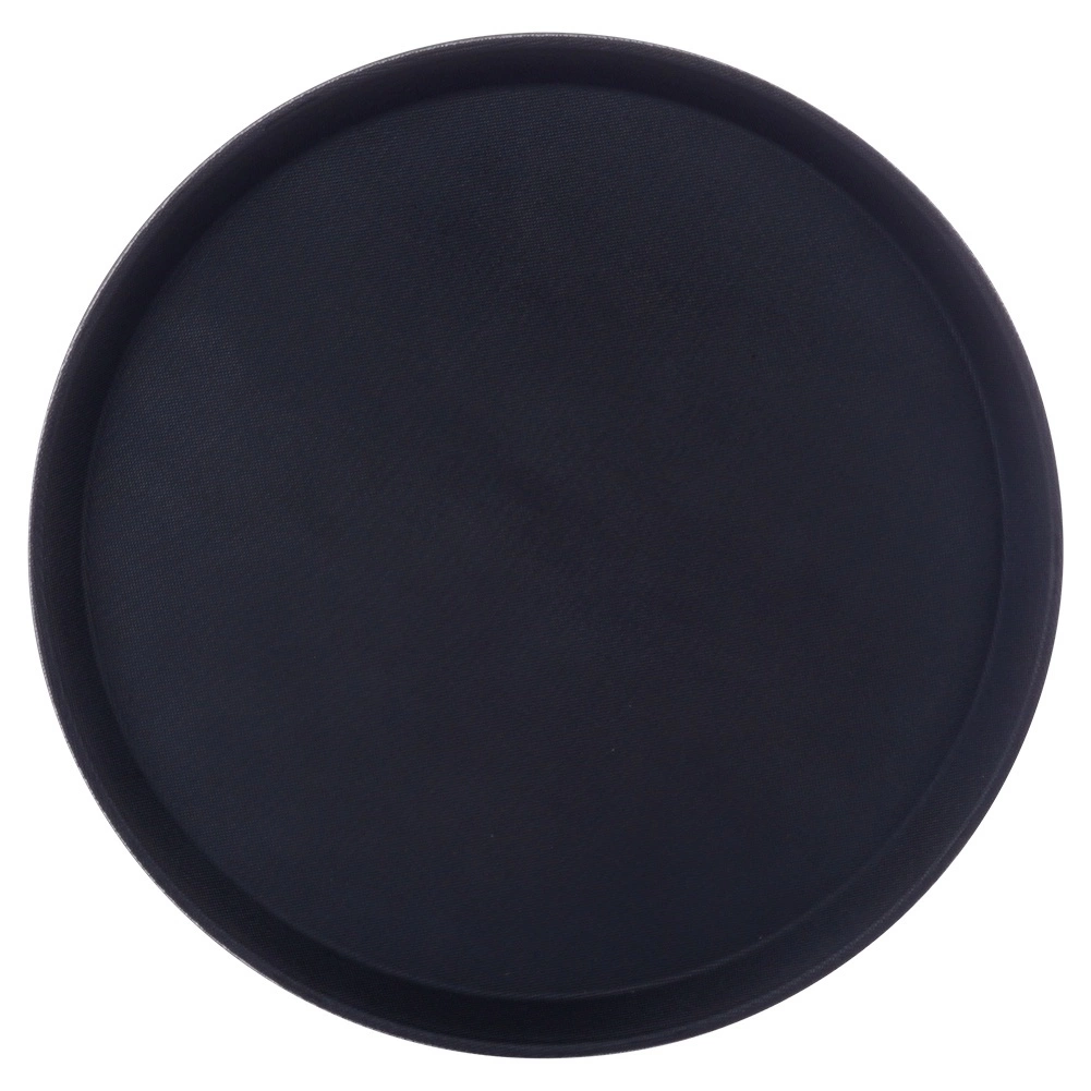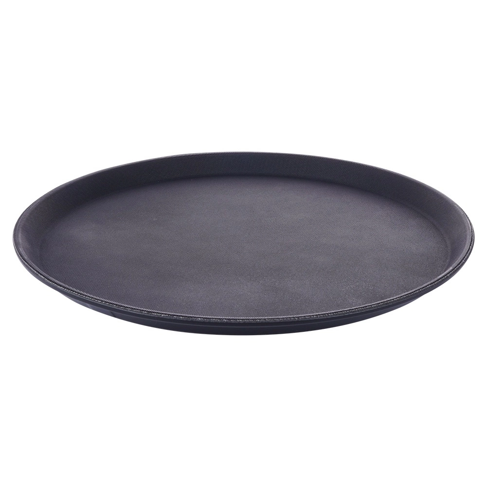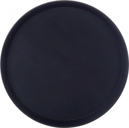 Okrugli crni poslužavnik pouzdan je pomoćnik za posluživanje u kafićima, restoranima i kod kuće. Zahvaljujući protukliznoj obradi čaše i tanjuri ostaju čvrsto na mjestu i pri bržem kretanju, dok povišeni rub sprječava spuštanje predmeta.