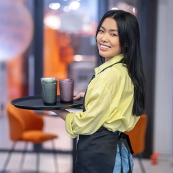 Izrađen od kvalitetne i lagane plastike koja se lako čisti i podnosi svakodnevni rad. Poslužavnik nudi dovoljno prostora za prenošenje više narudžbi odjednom te izgleda elegantno i profesionalno.