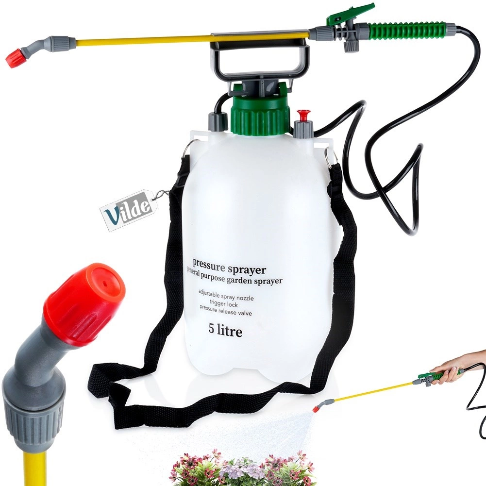 Ovaj ručni tlačni raspršivač zapremnine 5 litara pouzdan je pomoćnik za zalijevanje, orošavanje i preciznu primjenu gnojiva ili herbicida. Prozirni spremnik s mjernim oznakama olakšava kontrolu razine, podesiva mlaznica omogućuje prijelaz od fine maglice do kontinuiranog mlaza, a zaključavanje okidača osigurava udobnost pri duljem radu.