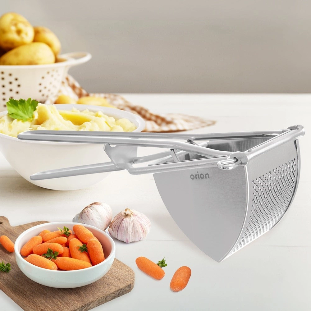 Robusna preša od nehrđajućeg čelika u elegantnoj srebrnoj izvedbi nezamjenjiv je pomoćnik u svakoj kuhinji. Umetnite kuhani krumpir, pritisnite ručke i dobit ćete fini pire u trenu. Jednako pouzdano obrađuje kuhano povrće ili mekano voće za dječje kašice.